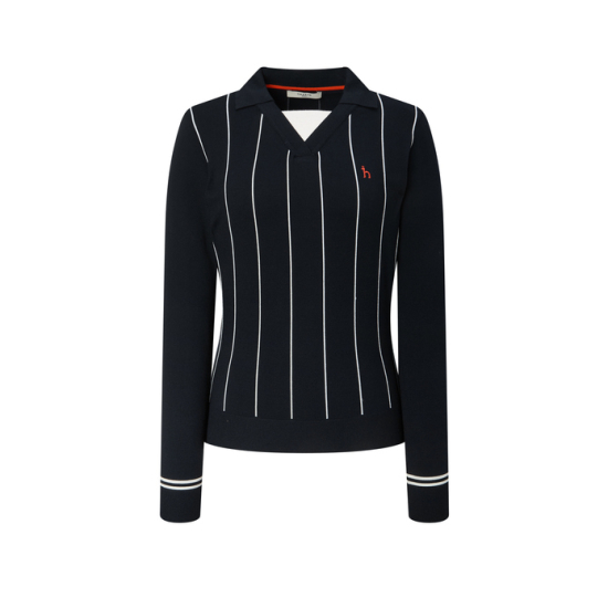 (롯데백화점)(NEW)네이비 여성 핀스트라이프 오픈 카라 니트 (HWSW5C615N3)