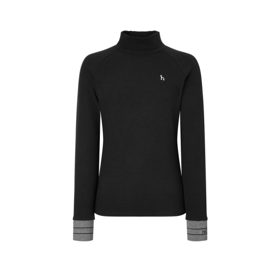 (롯데백화점)블랙 여성 기모 하이넥 라글란 절개선 티셔츠(HWTS5D711BK)