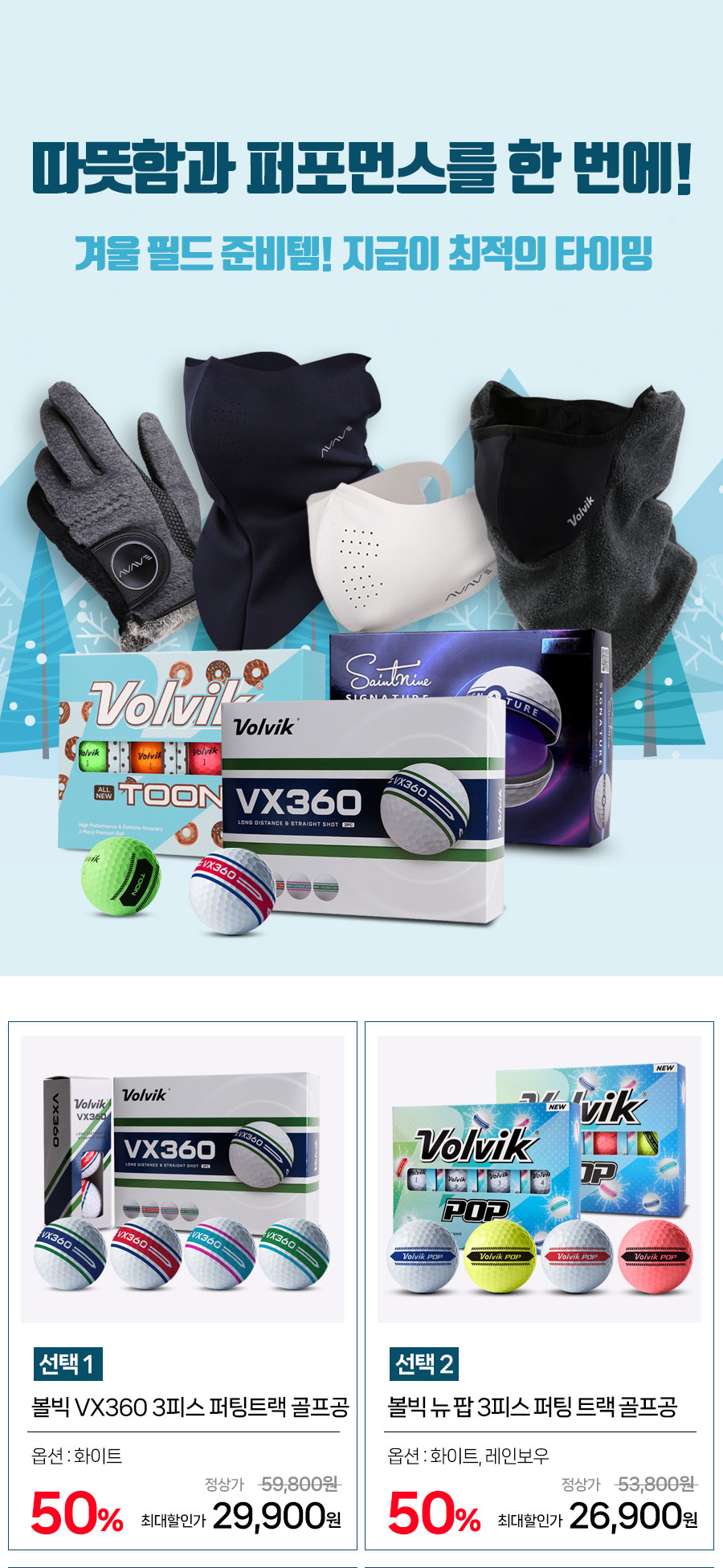 볼빅 듀얼컬러 3피스 360도 퍼팅라인 골프공 1더즌(12구)/남여방한장갑/방한마스크/최대~00% SALE/무료배송