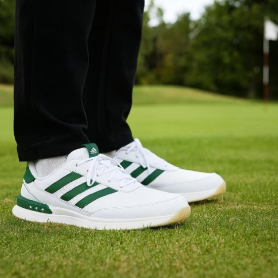 스_파이크가 없는 아디웨어 아웃솔의 강력한 접지력과 뒤꿈치를 받쳐주는 힐 클립의 단단한 지지력으로 코스 안팎에서 모두 편안하게 착용할 수 있습니다.