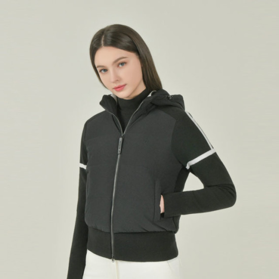 - 상품명여성 경량 스웨이드 하이브리드 다운 후드 집업(HWSW5D751BK)