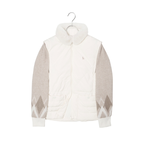 (롯데백화점)아이보리 소재배색 구스다운 패딩점퍼(HWJU5D754IV)