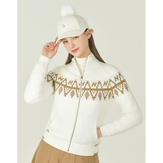(롯데백화점)화이트 여성 노르딕 방풍 니트 점퍼(HWSW5D717OW)