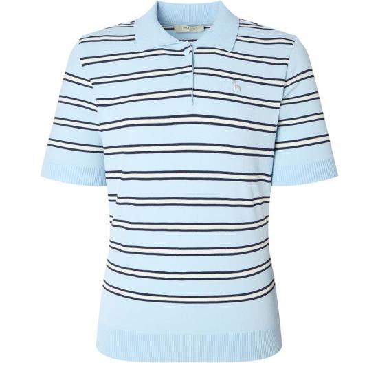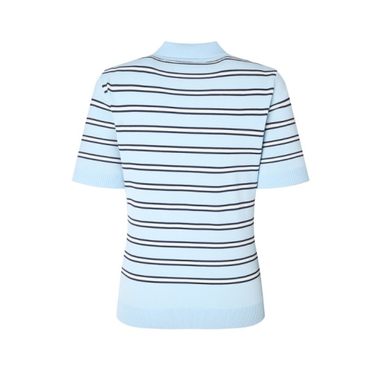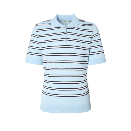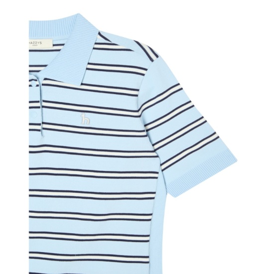 (롯데백화점)여성 멀티 스트라이프 반팔 카라 스웨터 HWSW5C513