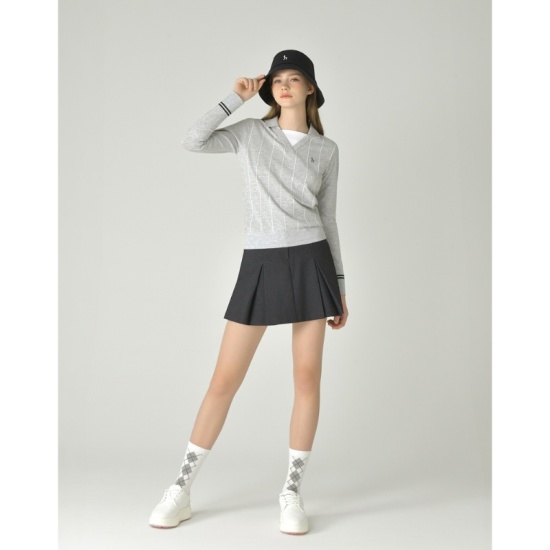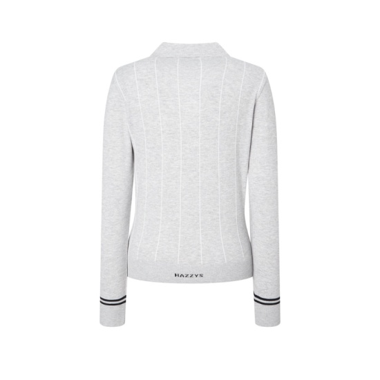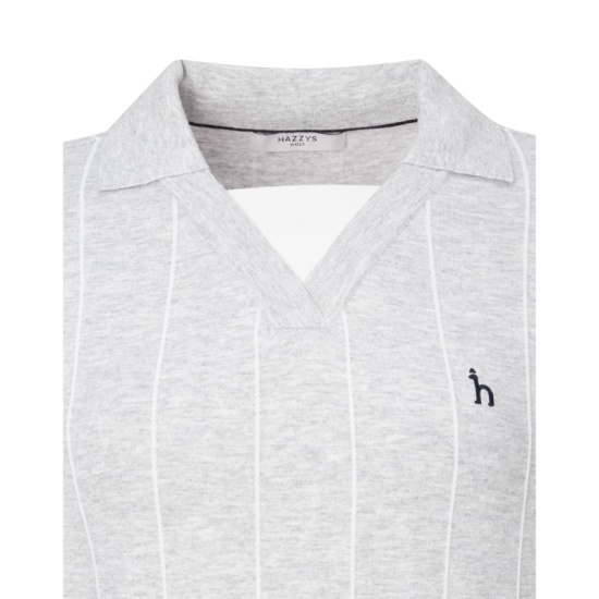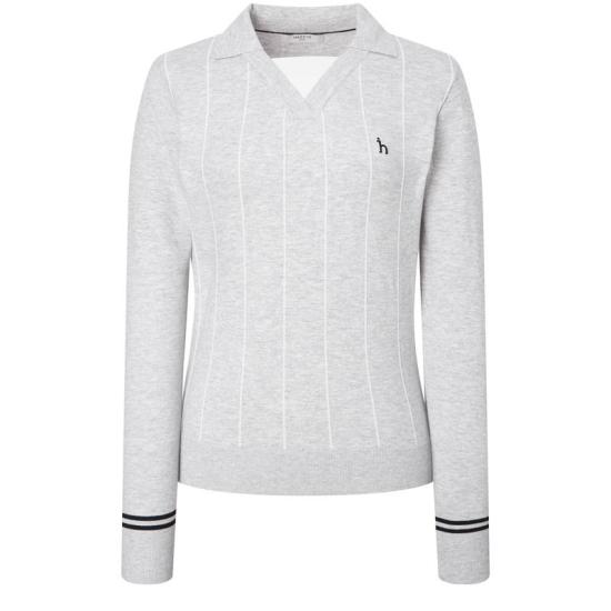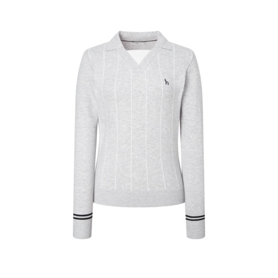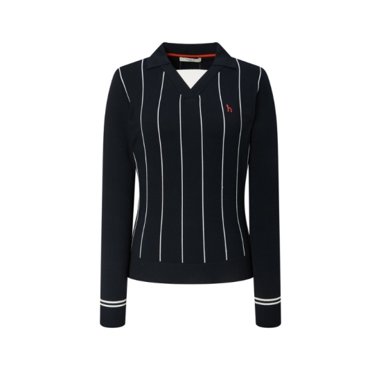 (롯데백화점)여성 핀스트라이프 오픈 카라 니트 HWSW5C615