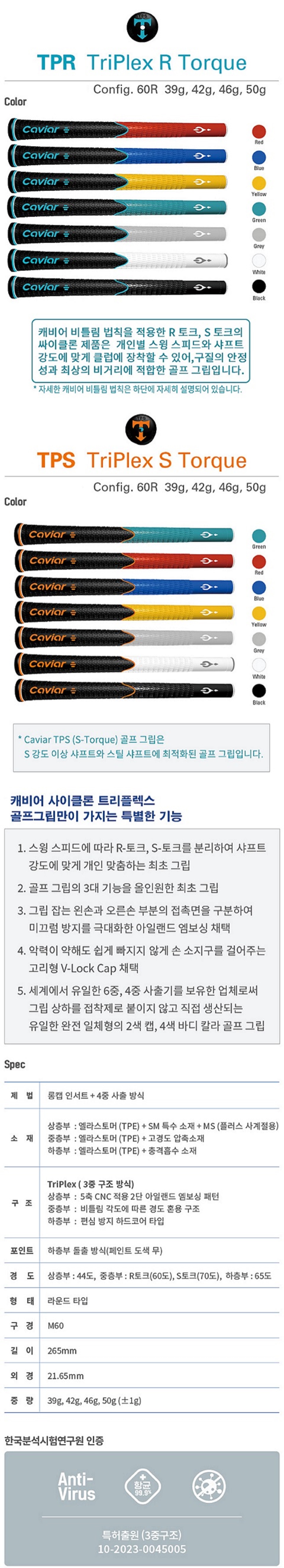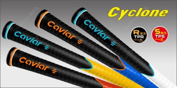 #클럽부품, #인기그립, #라운드그립◈ 제품코드 : #350924C30▶ 제품명 : 캐비어 싸이클론 골프그립 / 남성용 / 엘라스토머 / 아일랜드 엠보싱 / 60R▶ 토크 : TPR (R토크) / TPS (S토크)▶ 색깔 : 레드, 블루, 엘로우, 그린, 그레이, 화이트, 블랙 (7가지)▶ 중량 : 39g / 42g / 46g / 50g