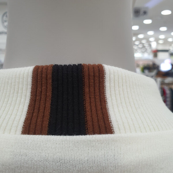 변형 하이넥 터틀 스웨터 디자인소매라인에 배색이 깔끔한 포인트로 베스트아우터와 코디하기좋은스타일
