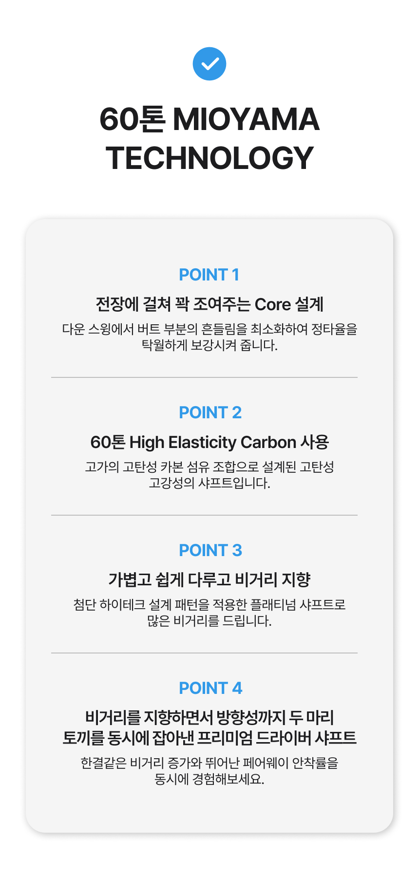 미오야마 프리미엄 60T 고강직도 샤프트!