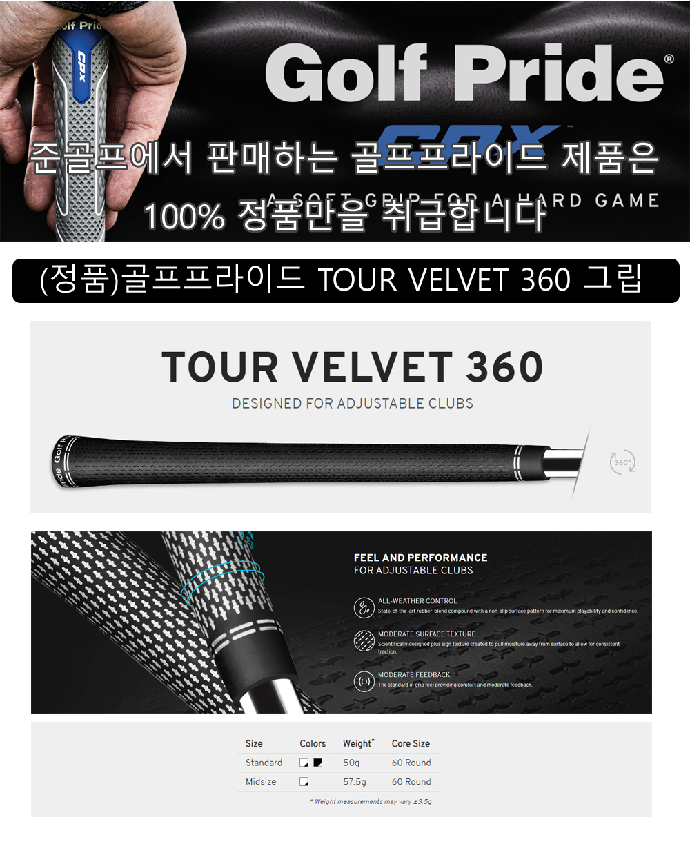 (정품)골프프라이드 투어벨벳 TOUR VELVET 360 블랙 골프그립(매장방문교체)