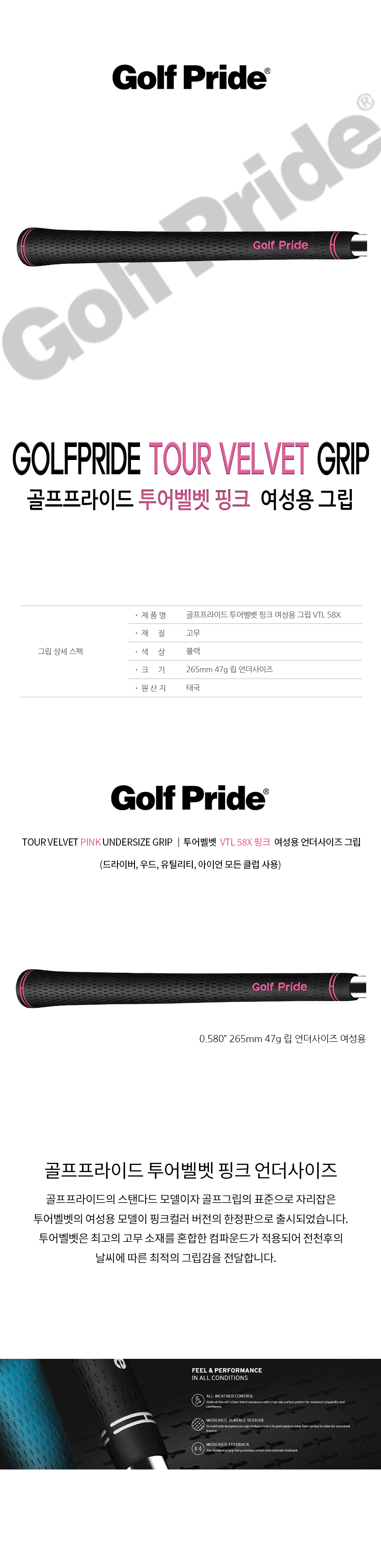 골프프라이드 투어벨벳 핑크 여성용 골프 그립 VTL58X