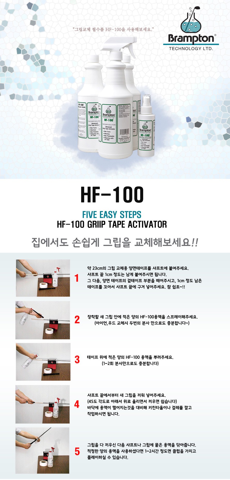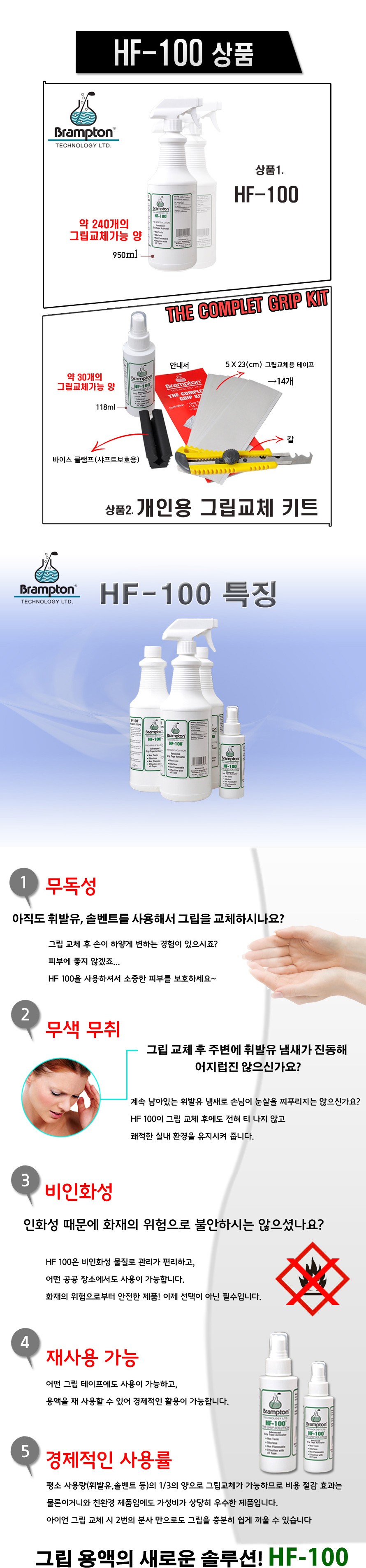 골프 그립 교체액 브렘튼 용액 HF100 118ml 무독성 무색무취 비인화성 재사용가능 셀프피팅