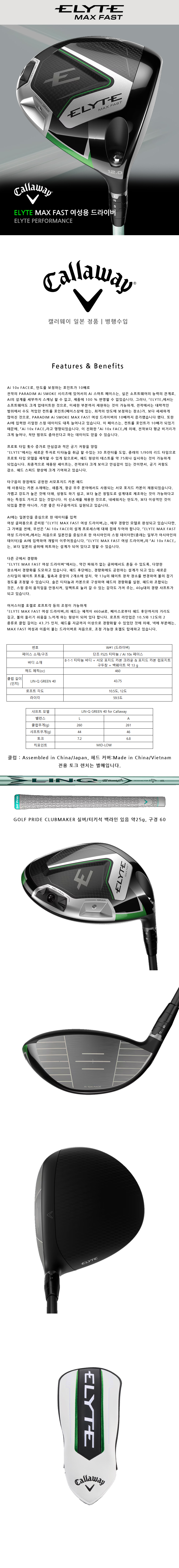 캘러웨이 엘리트 맥스패스트 드라이버 2025년 여성용 L 12도 ASIA 스펙 일본 병행 AS보증