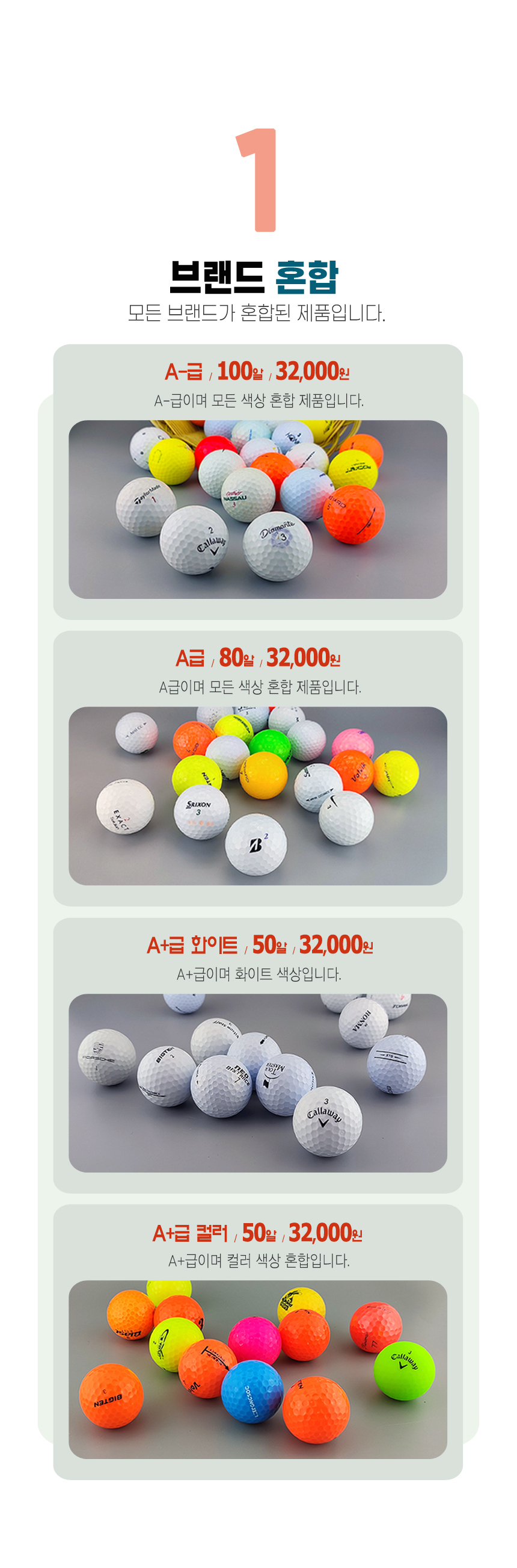 순수 비재생 100알~ 브랜드혼합 로스트볼 골프공 타이틀리스트 볼빅 캘러웨이 브리지스톤 등 안심살균세척