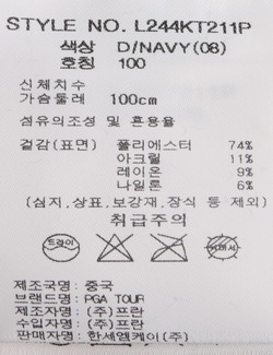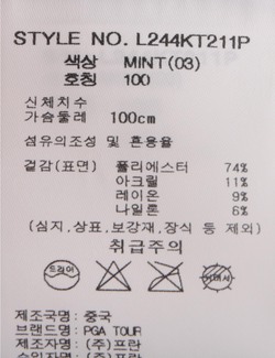 제품소재 : [겉감표면]폴리에스터74% 아크릴11% 레이온9% 나일론6%