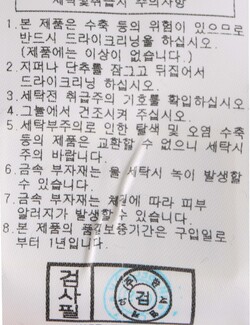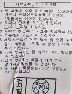 세탁방법 및 취급시 주의사항 : 본 제품은 반드시 드라이크리닝 하십시오.(세탁라벨참고)
