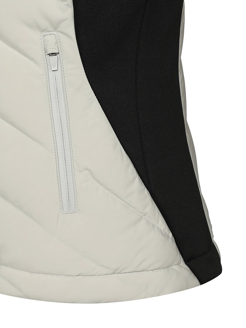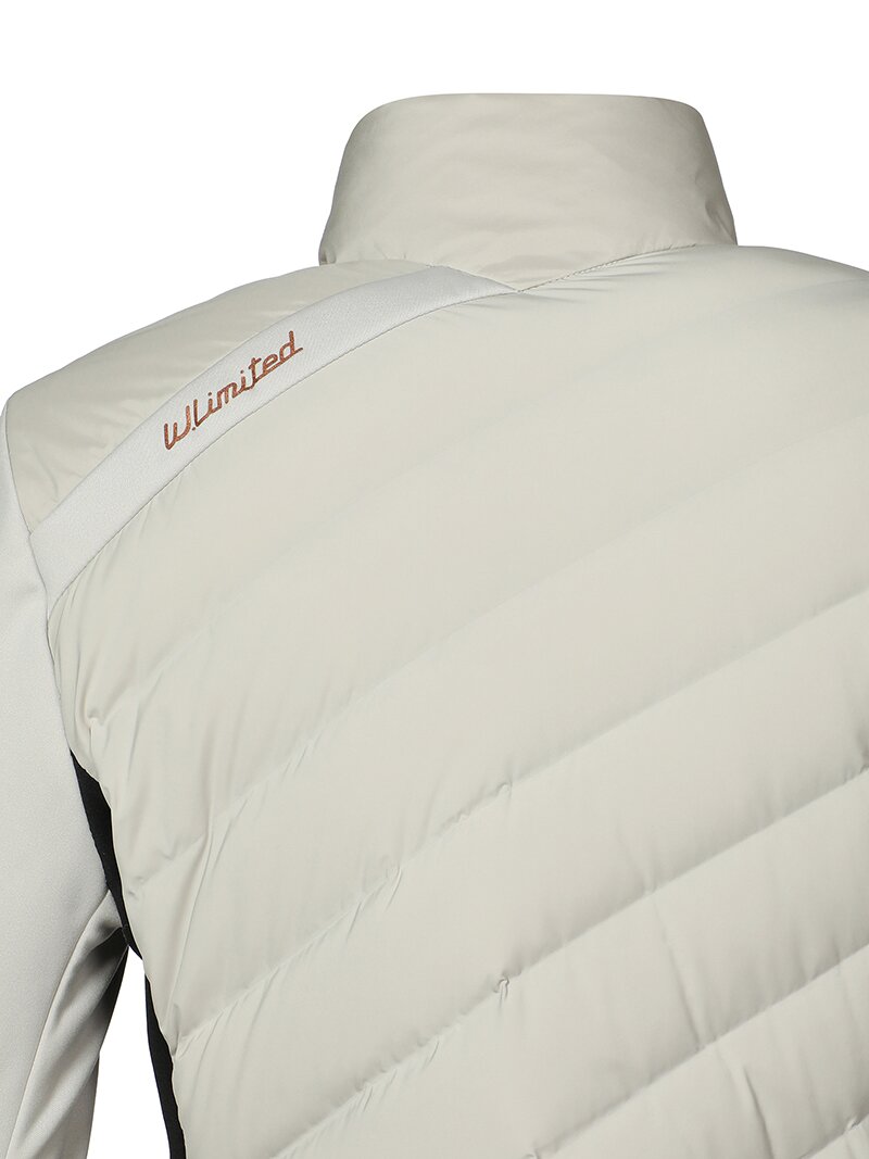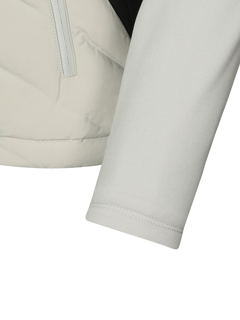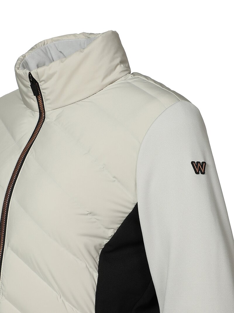 [활동성이 우수하며 스포티한 무드의 하이브리드 스윙 다운] - 베이직한 디자인의 기본 하이브리드 스윙 다운 - 소매 저지 소재로 활동성 우수 - 등판 상탄 우레탄 로고 플레이로 스포티한 무드 강화 - 구스다운 사용으로 가볍고 뛰어난 보온성