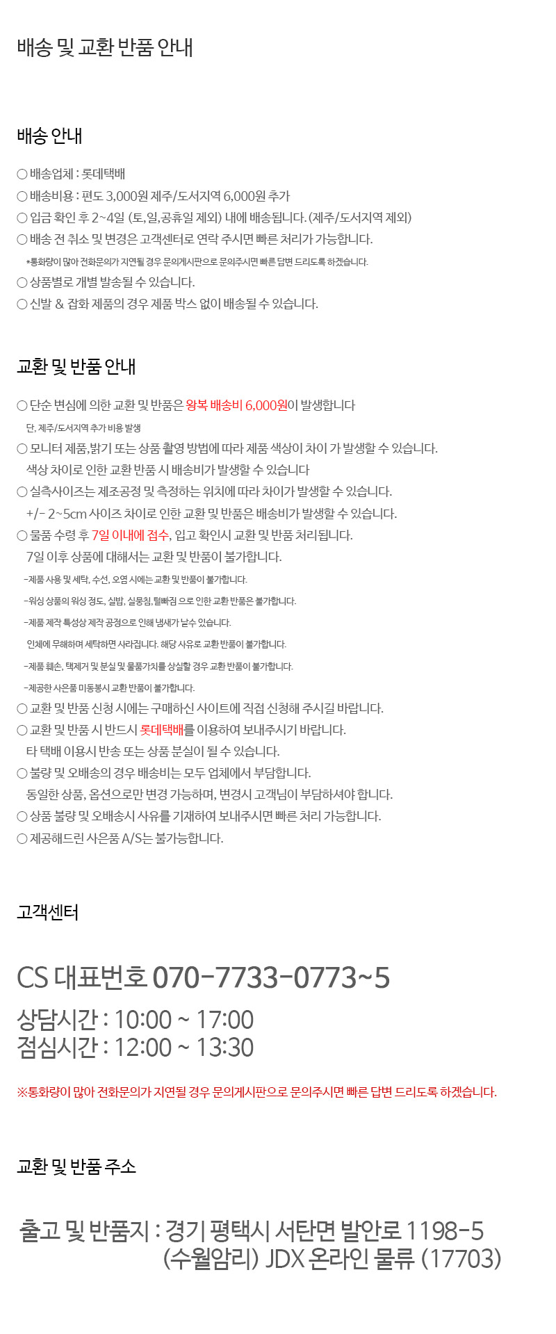 추가배송비관련 주의사항