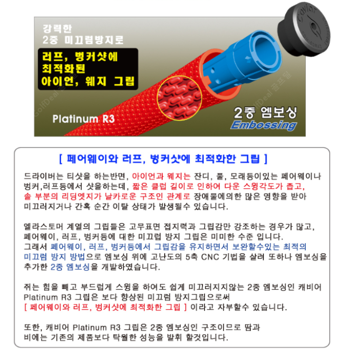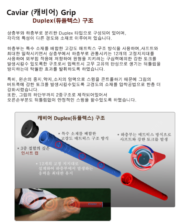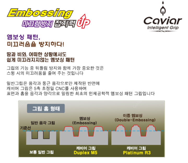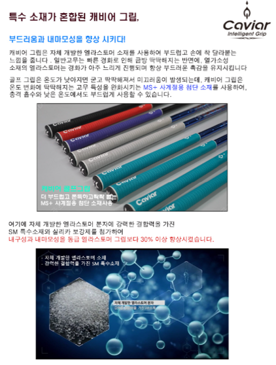 캐비어그립은 대한민국 기술로 개발한 신개념 골프 그립으로