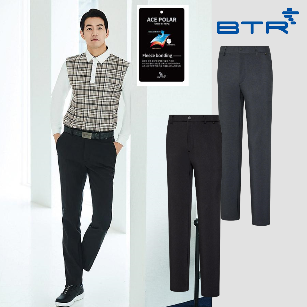 BSP9593M 비티알 체스(R) 남성 겨울 골프 잔체크 스트레치 밴드 기모바지