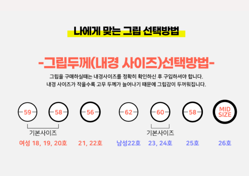 남성용 / 여성용 / 왼손용 / 어린이용