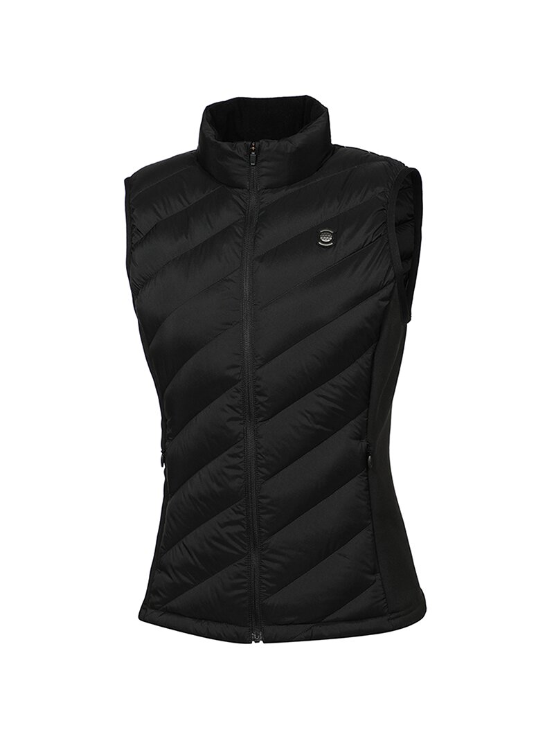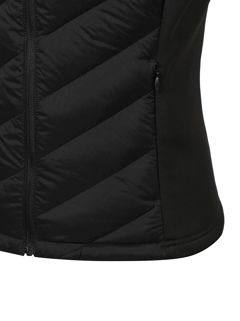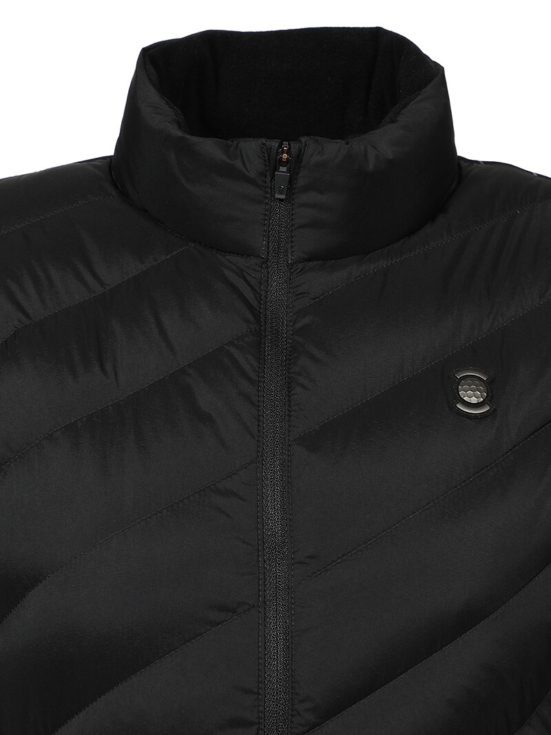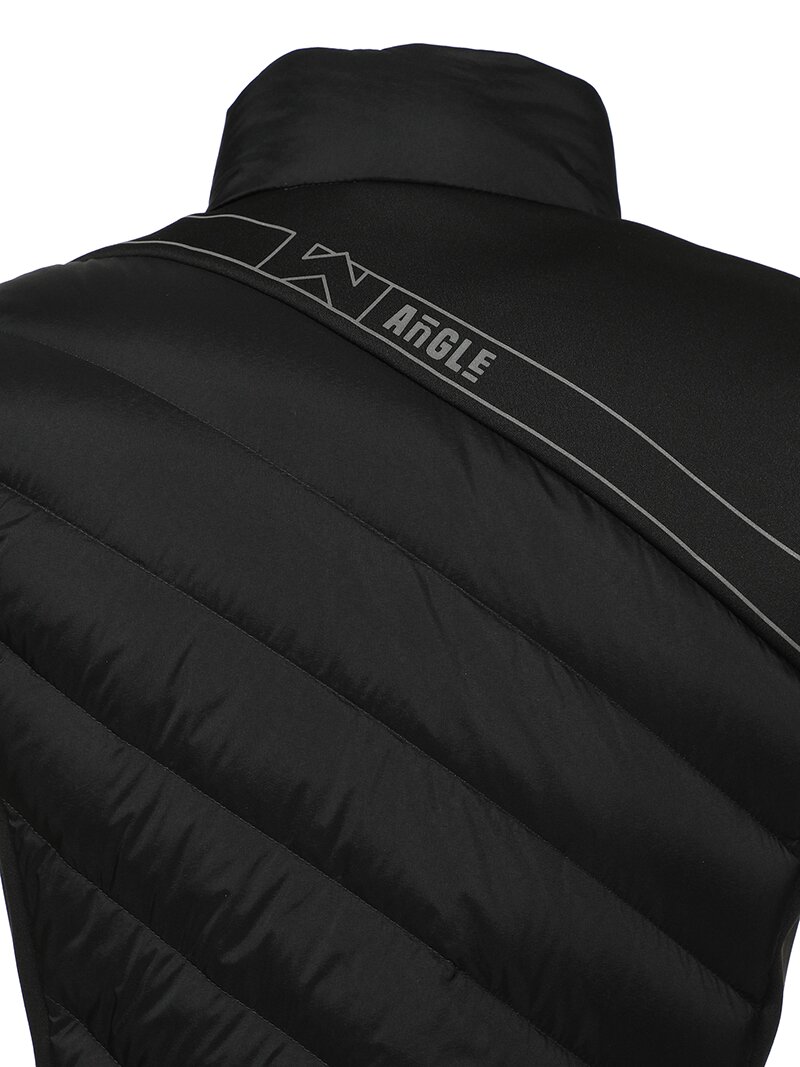 [가벼운 착용감을 자랑하며 등판에 로고 포인트가 있는 퀼팅 다운 베스트] - 져지 소재를 믹스한 사선 퀼팅의 하이브리드 다운 자켓 - 안감 없이 퀼팅이 되어있어, 가벼운 착용감 - 등판 상단에 로고 프린트로 포인트 가미