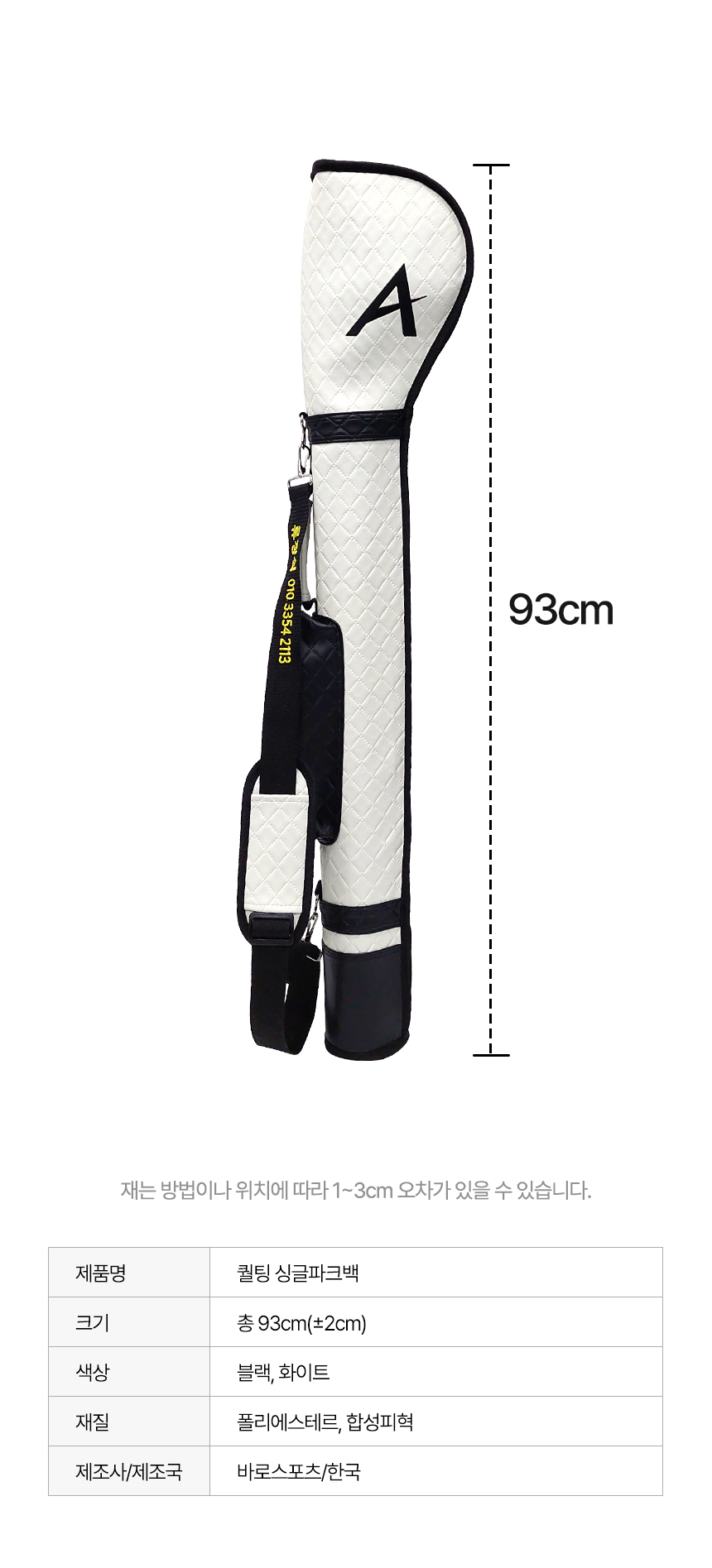 바로스포츠 퀄팅 싱글파크백 파크골프채 가방 파크골프 클럽 케이스