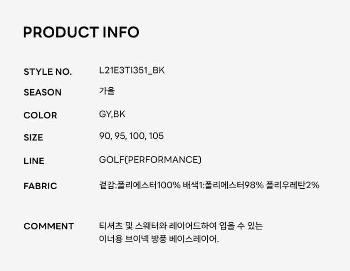 링스골프모다아울렛여성 브이넥방풍레이어 L21E3TI351-1-1BP