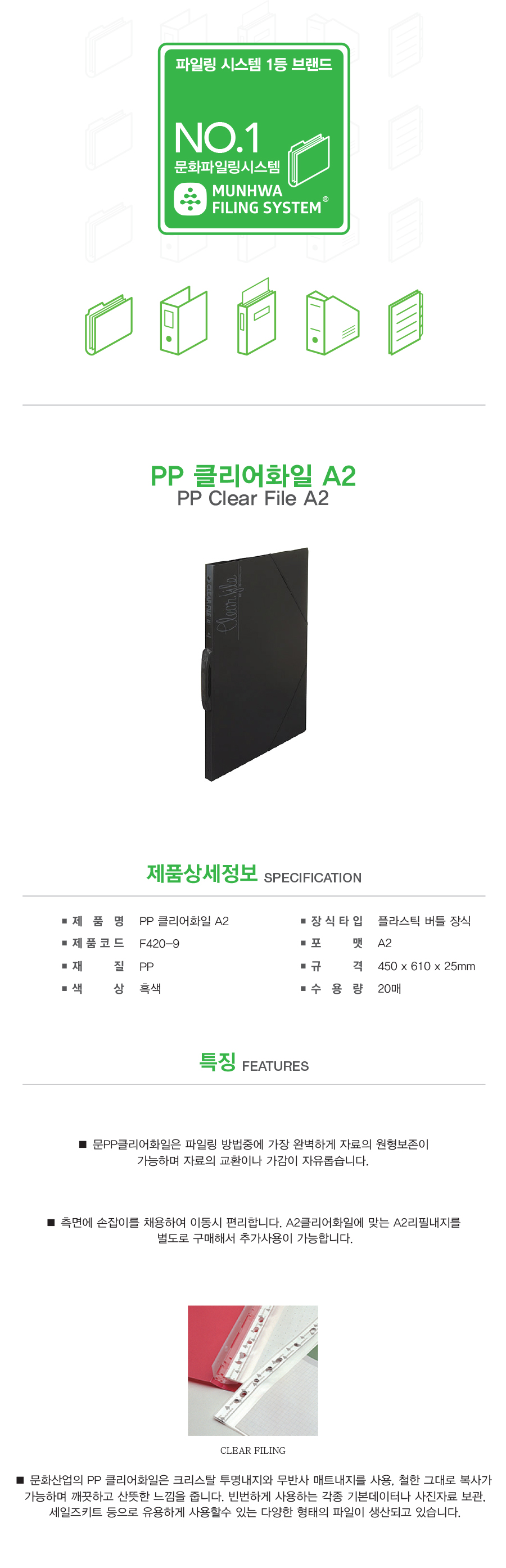 클리어화일 A2 F420-9 20매 흑색 문화산업