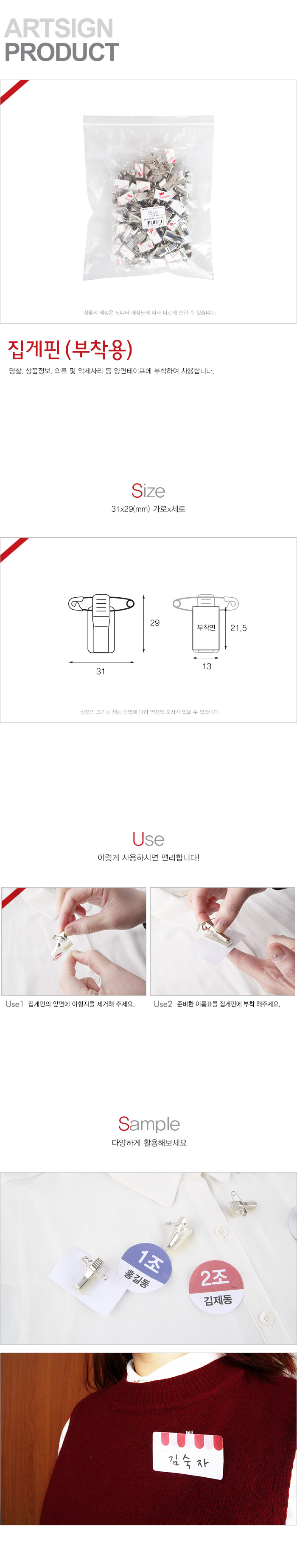 집게핀 부착용 29x30 100개입_M0016 아트사인 2326