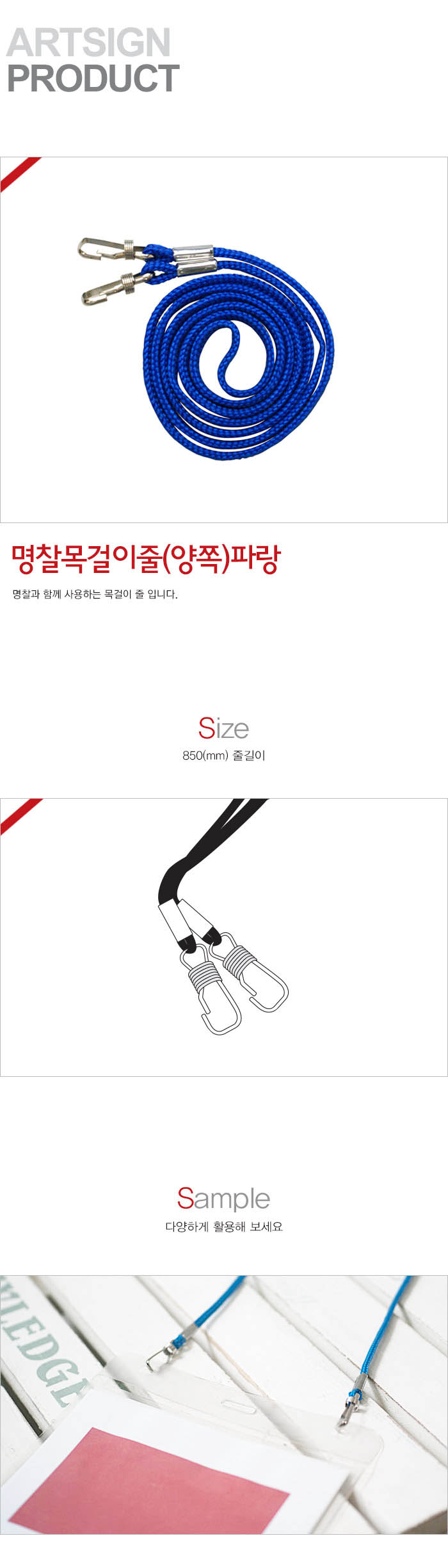 양쪽목걸이줄 850mm 100개입 파랑 아트사인 2356