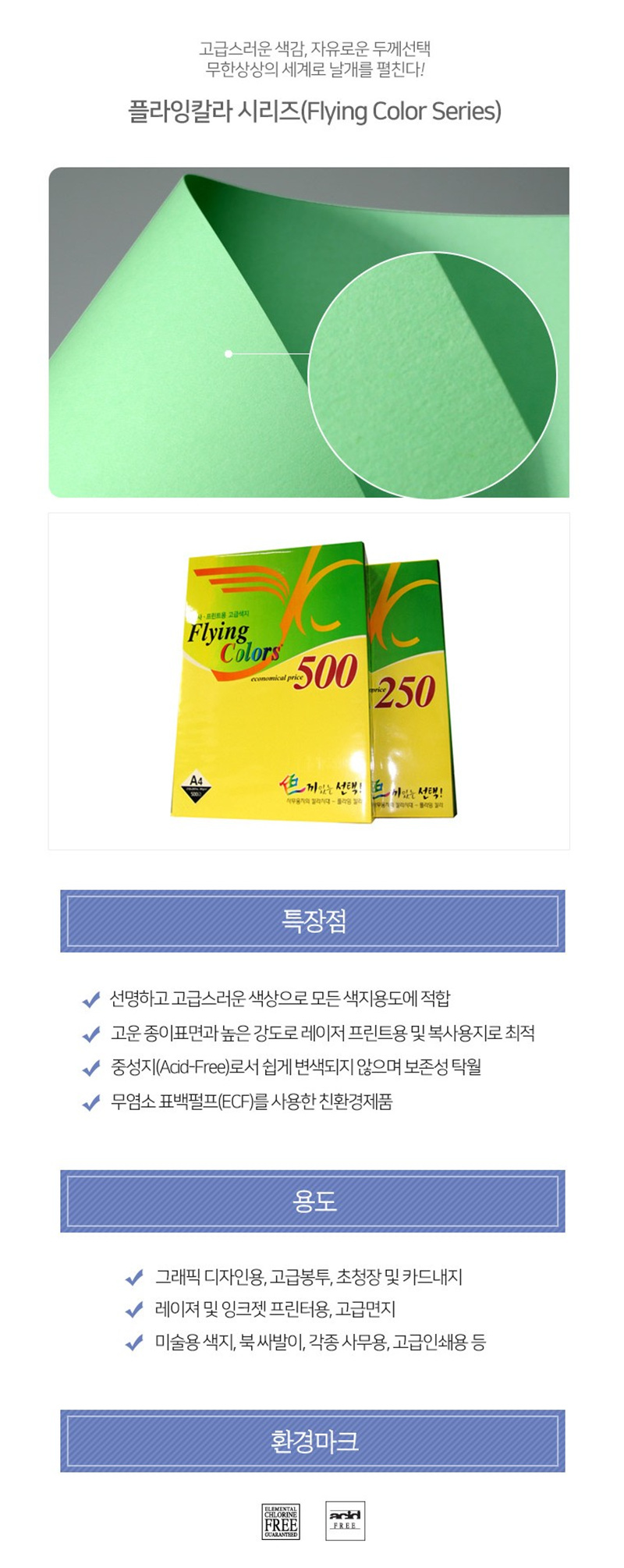 플라잉칼라용지 80g No.19 연녹색 500매 삼원
