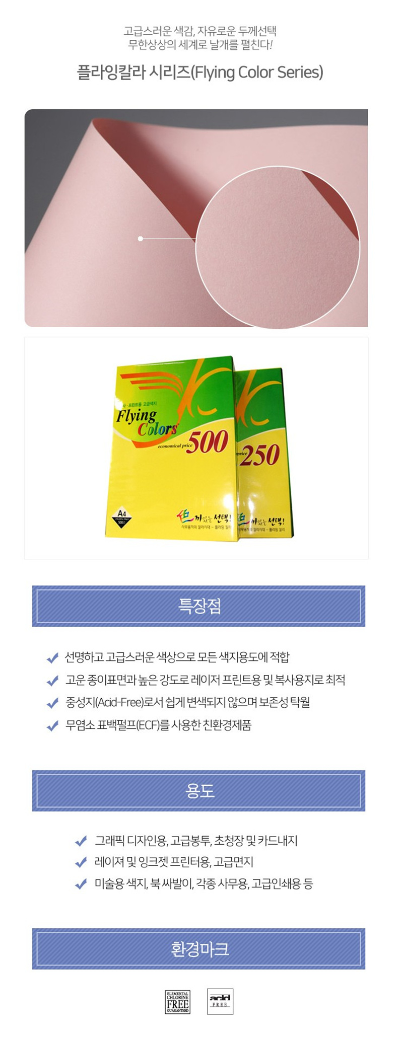 플라잉칼라용지 80g No.18 연분홍 500매 삼원