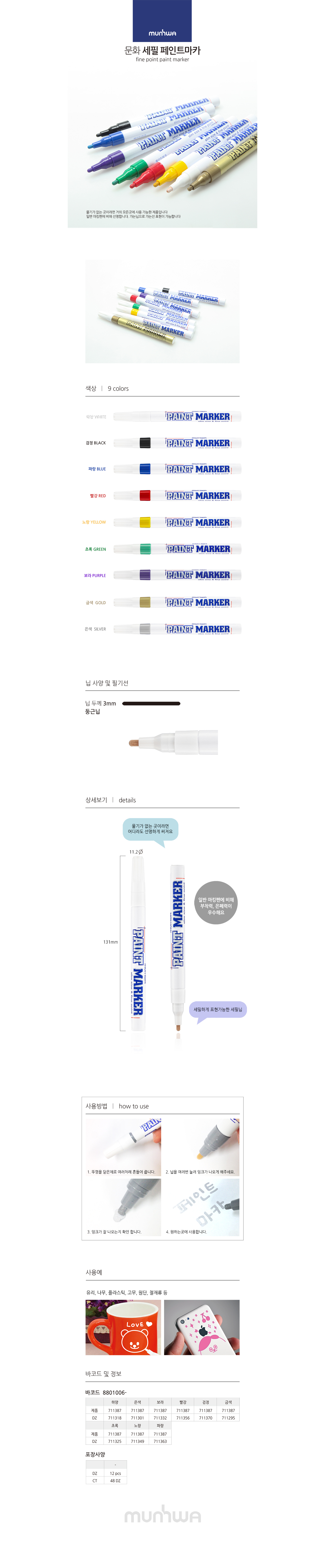 세필페인트마카 12자루 백색 3.0mm 문화