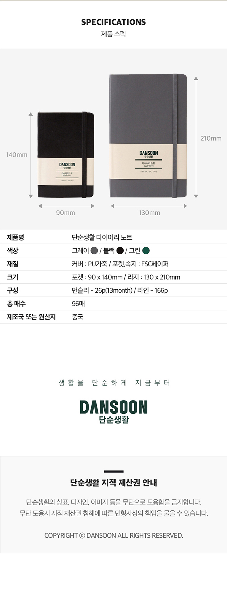 단순생활 다이어리노트 소프트커버 라지 그린 01043
