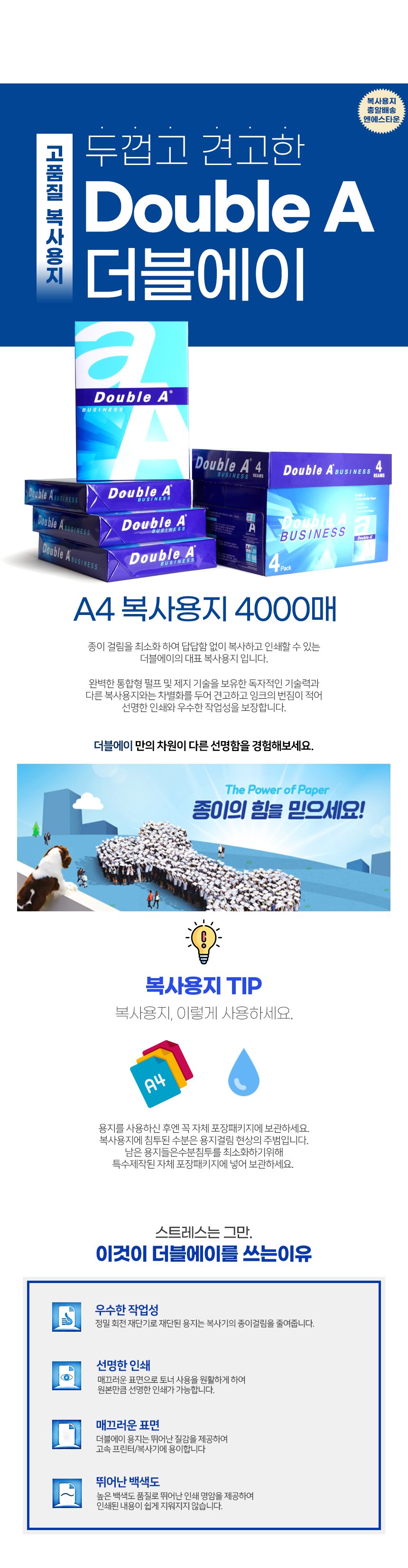 더블에이 A4 복사용지 80g 2000매 2박스 두꺼운 프린터 프린트 사무용지 에이포 더블A(Double A)