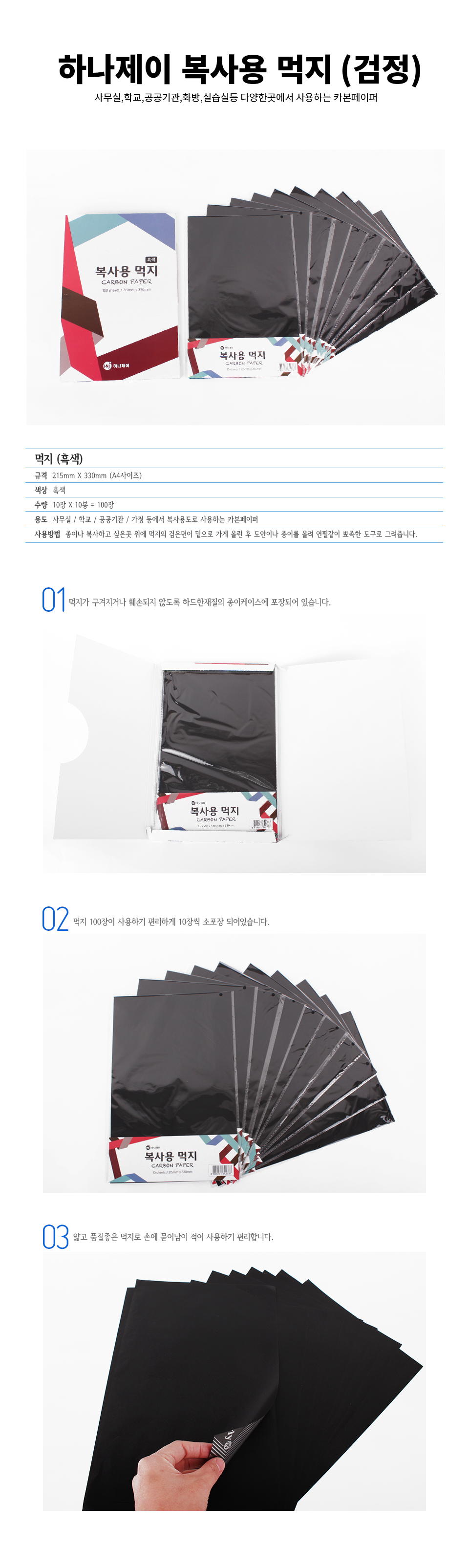먹지 1갑 100장 세로 A4 210x297 하나제이