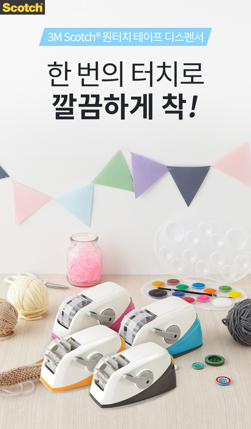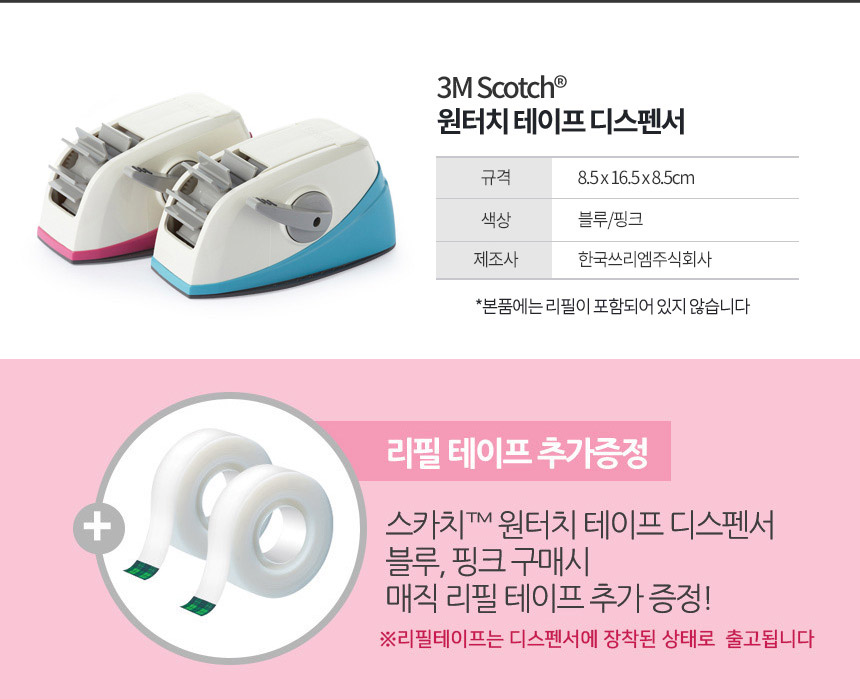 3M 스카치 테이프 원터치 디스펜서 블루/핑크(선택)+매직테이프 2롤+랜덤 포스트잇+메가커피