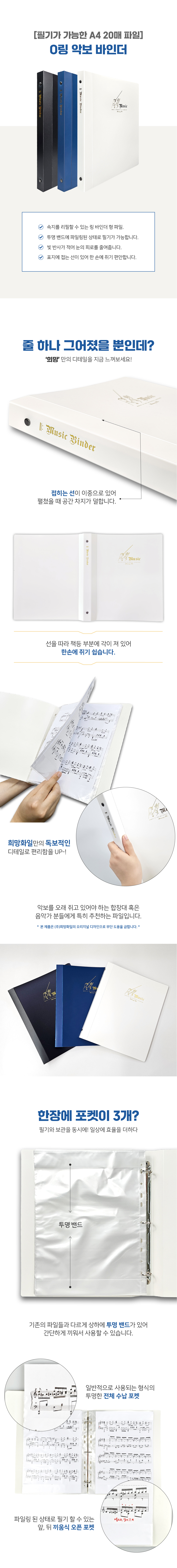 악보화일 A4 네이비 O링 PP 20매 BP3307 희망화일