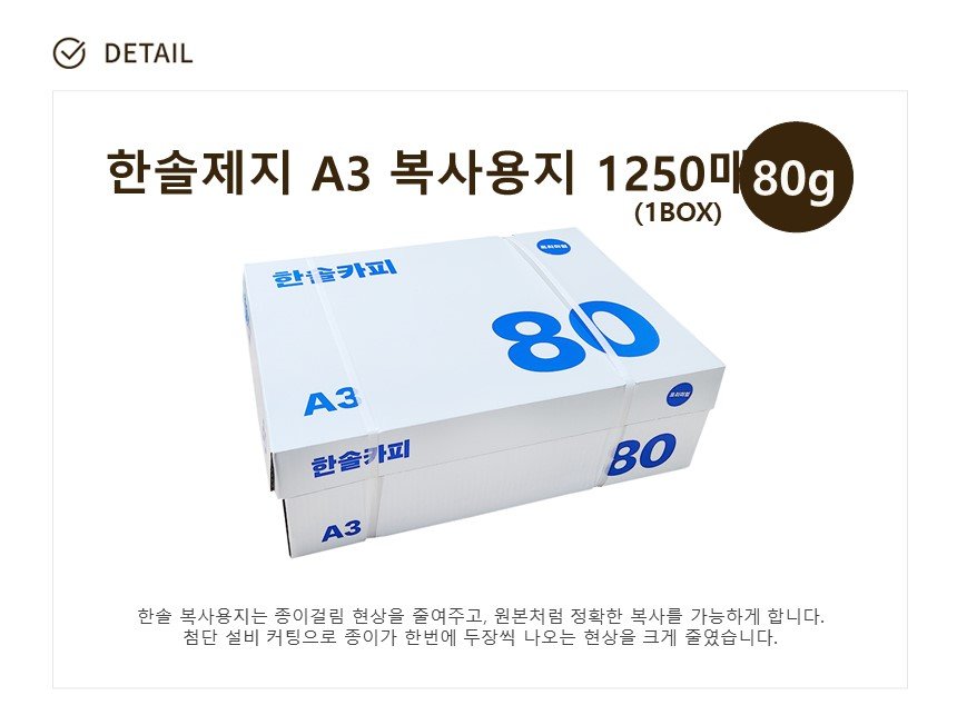 한솔제지 A3용지 복사용지 80g 1박스 1250매