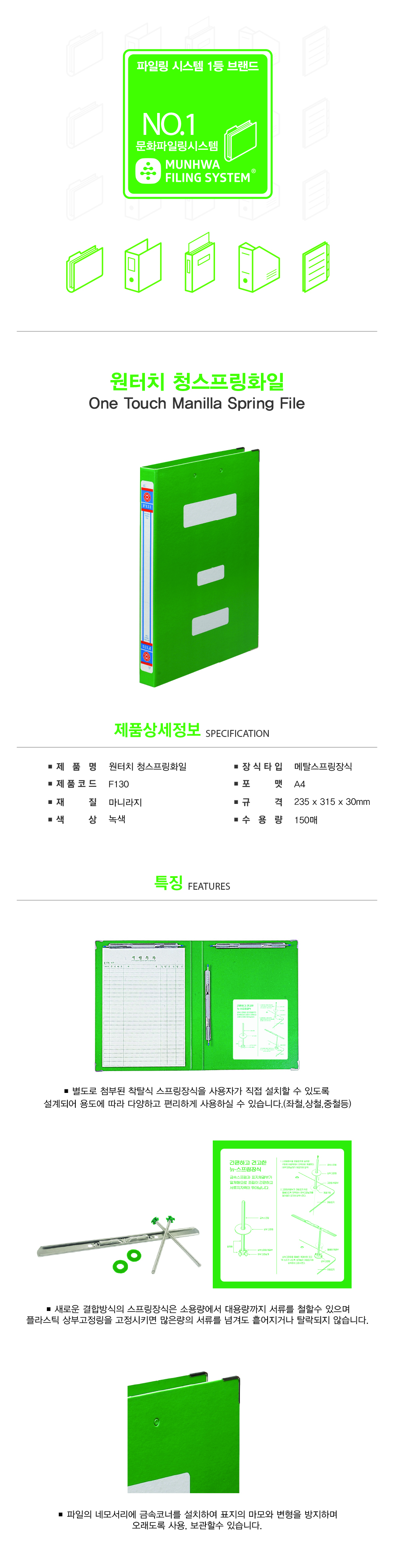 녹색스프링화일 5개 A4 합지 F130 문화산업