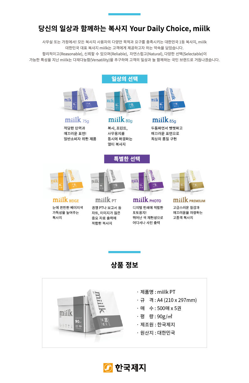밀크 PT A4 90g 5000매(2500매 x 2박스) SAMU(G)