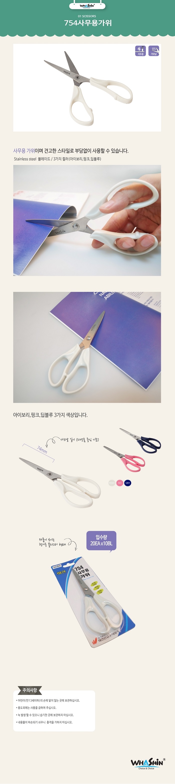 화신 754 사무용 가위 랜덤색상