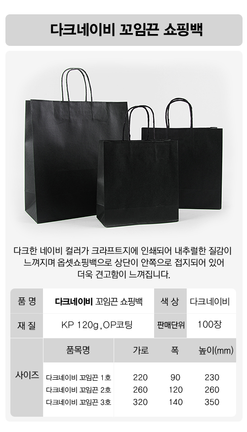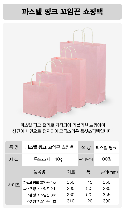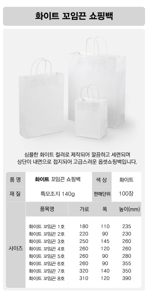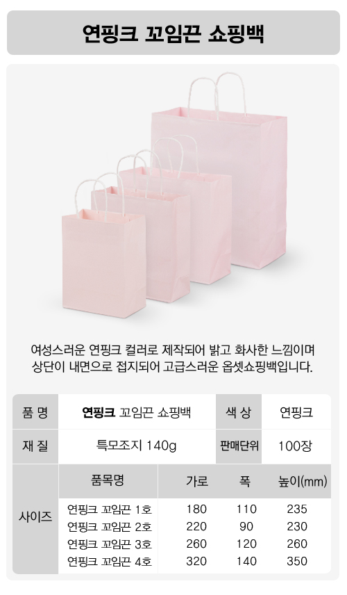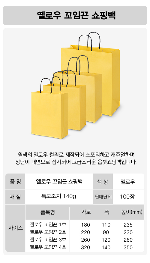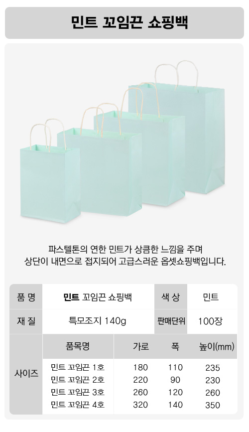 나우스팩 무지 컬러 종이쇼핑백 모음전 (100장) - 15가지 컬러