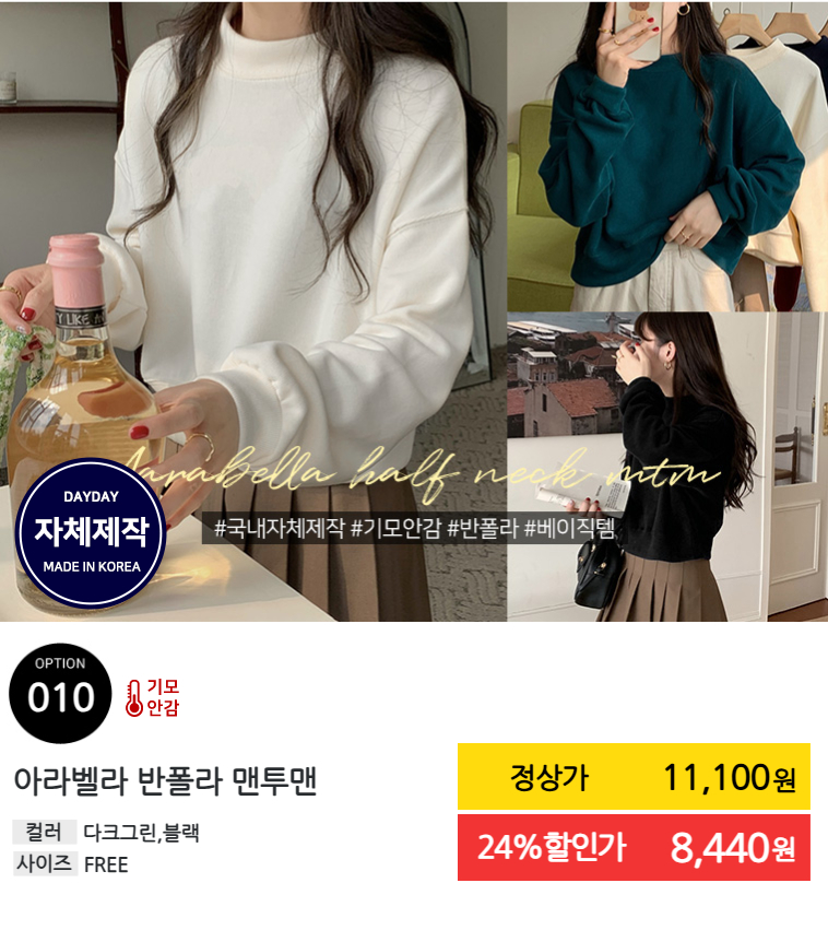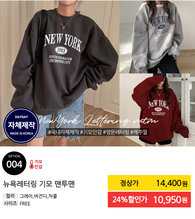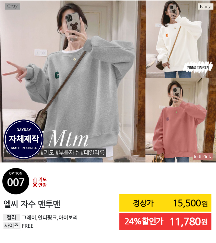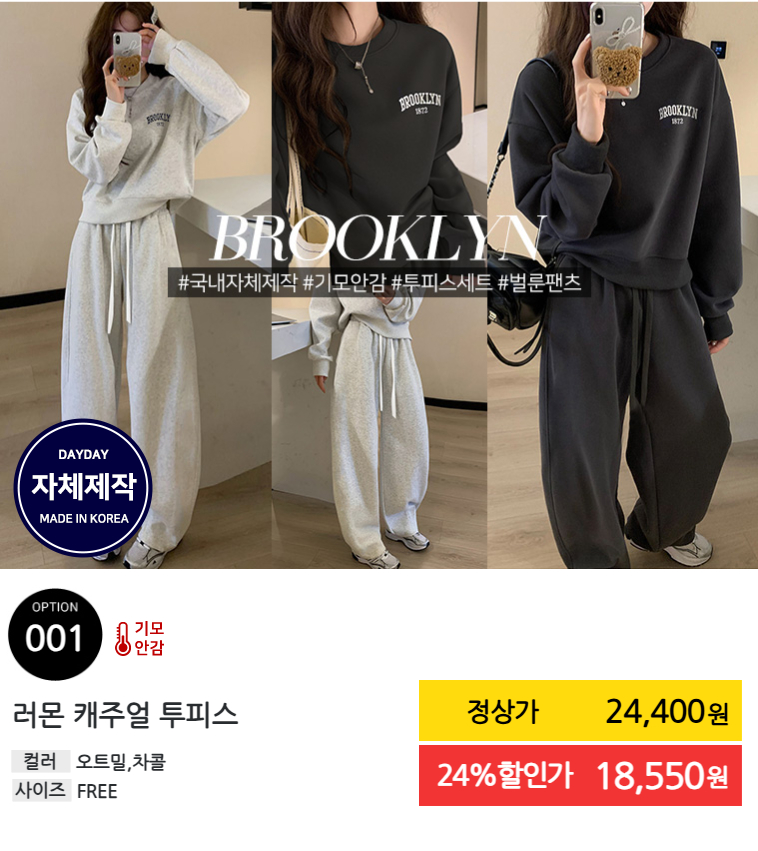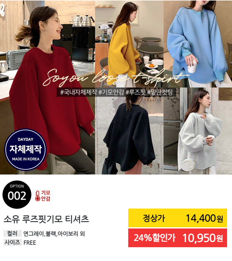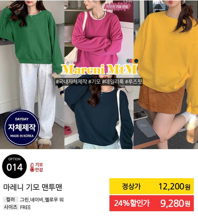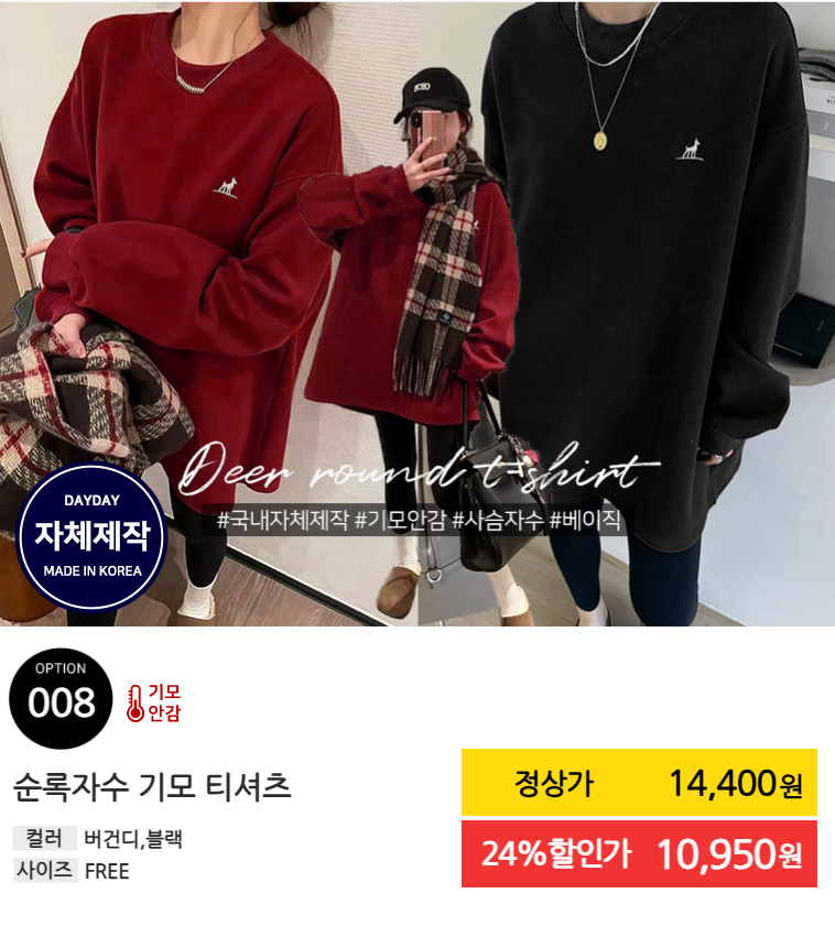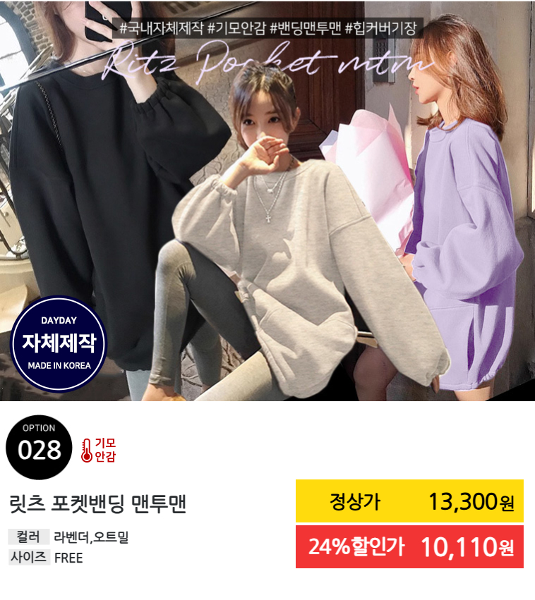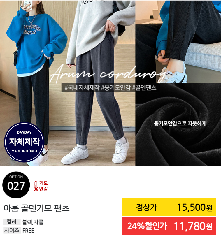 (패션픽)(20%) 5020원~데이데이 여성패딩점퍼/빅사이즈/기모바지/경량패딩/겨울원피스/맨투맨/니트/엄마옷