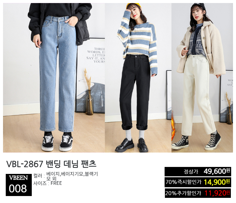 (패션픽) (20%) 8700원~ 150종 브이빈 겨울신상 역마진특가 청바지/바람막이/슬랙스/맨투맨/후드티/니트
