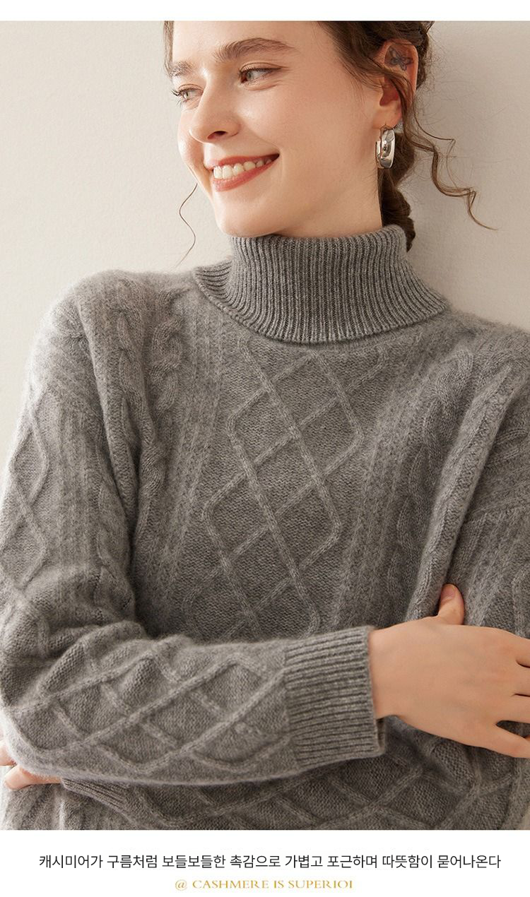여성니트 도톰100 퓨어 캐시미어 오합 니트 터틀넥 오버핏 풀오버,여성니트스웨터,라운드넥니트스웨터,루즈핏니트스웨터,박시핏니트스웨터,민소매니트스웨터,브이넥니트스웨터,폴라니트스웨터,터틀니트스웨터