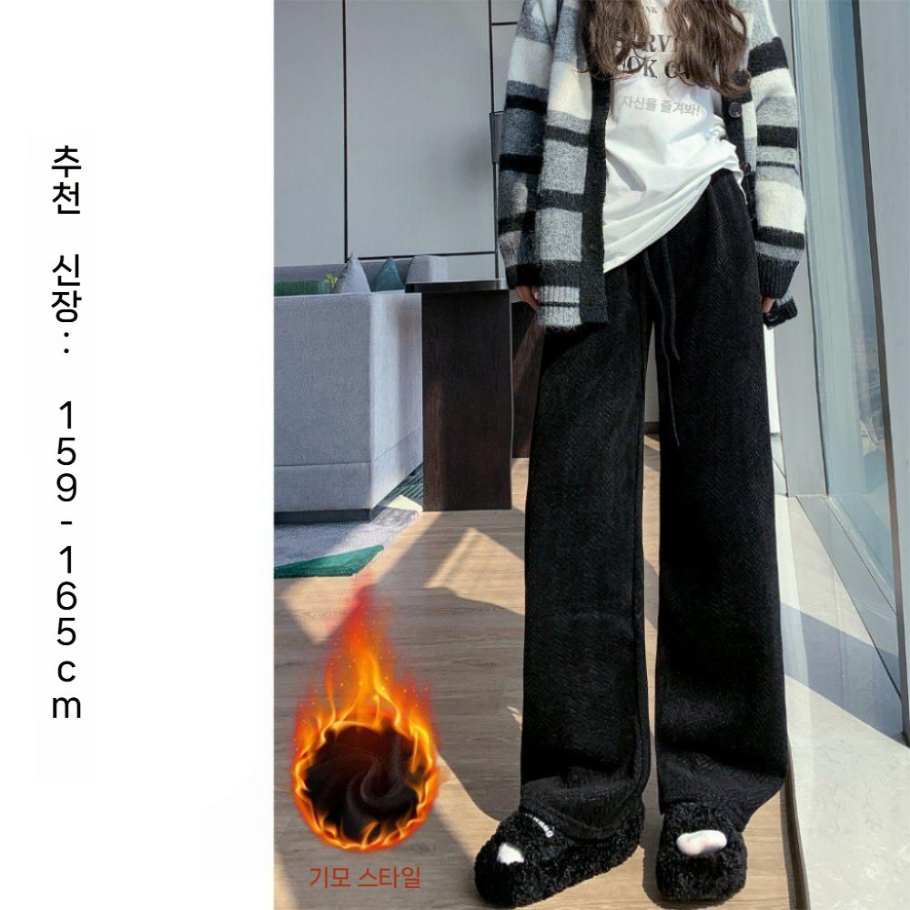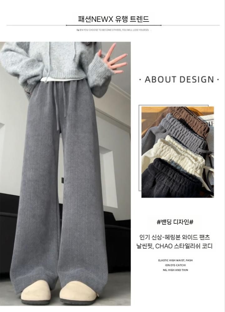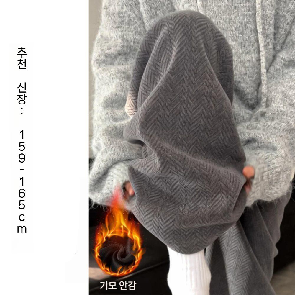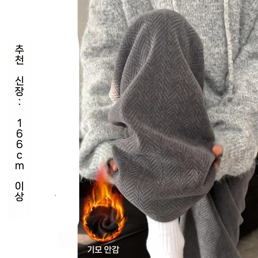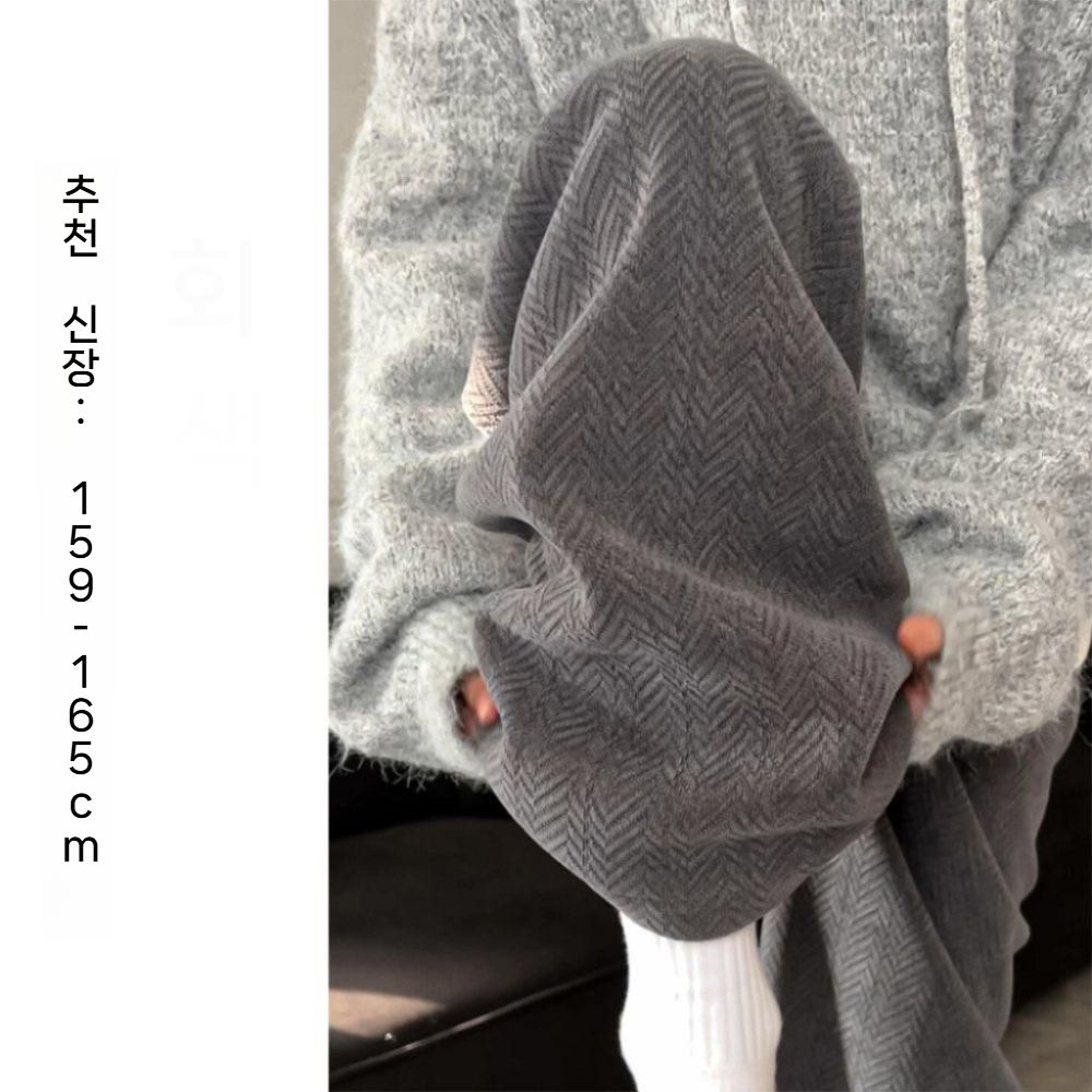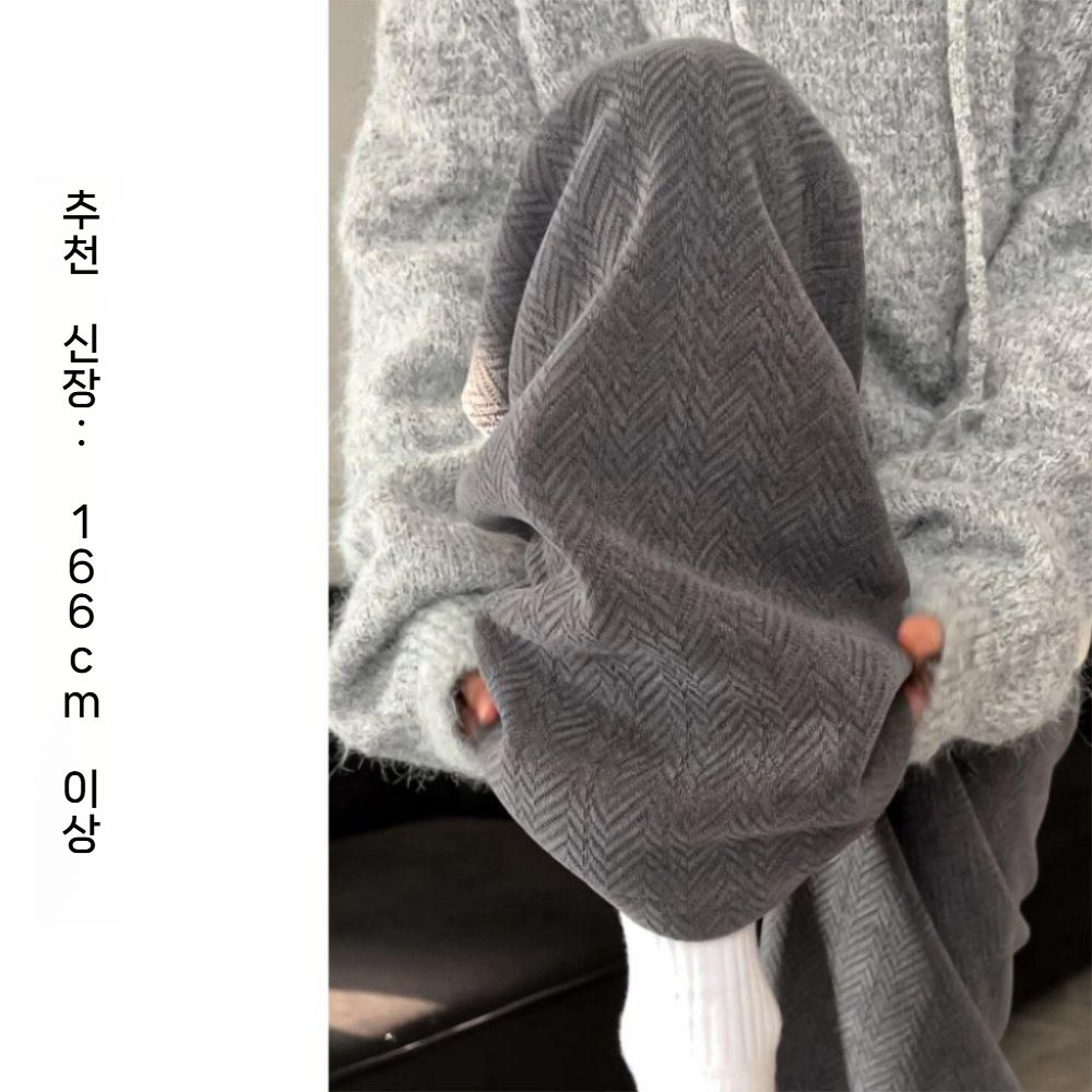 후끈 그레이 헤링본 셔닐 모직 와이드 양털 기모 팬츠 여성용 ss1236