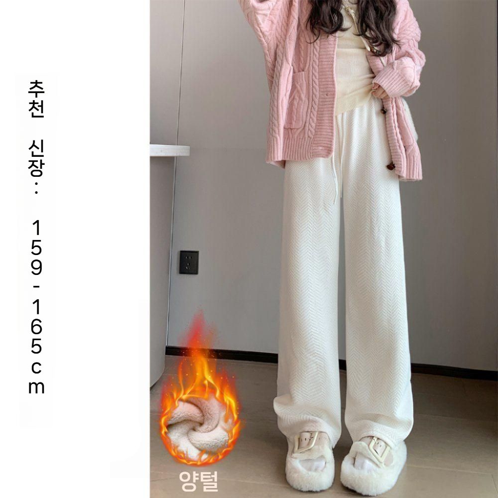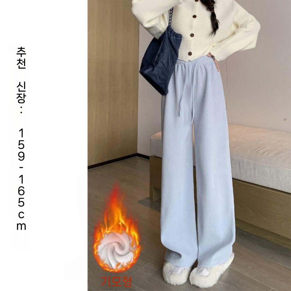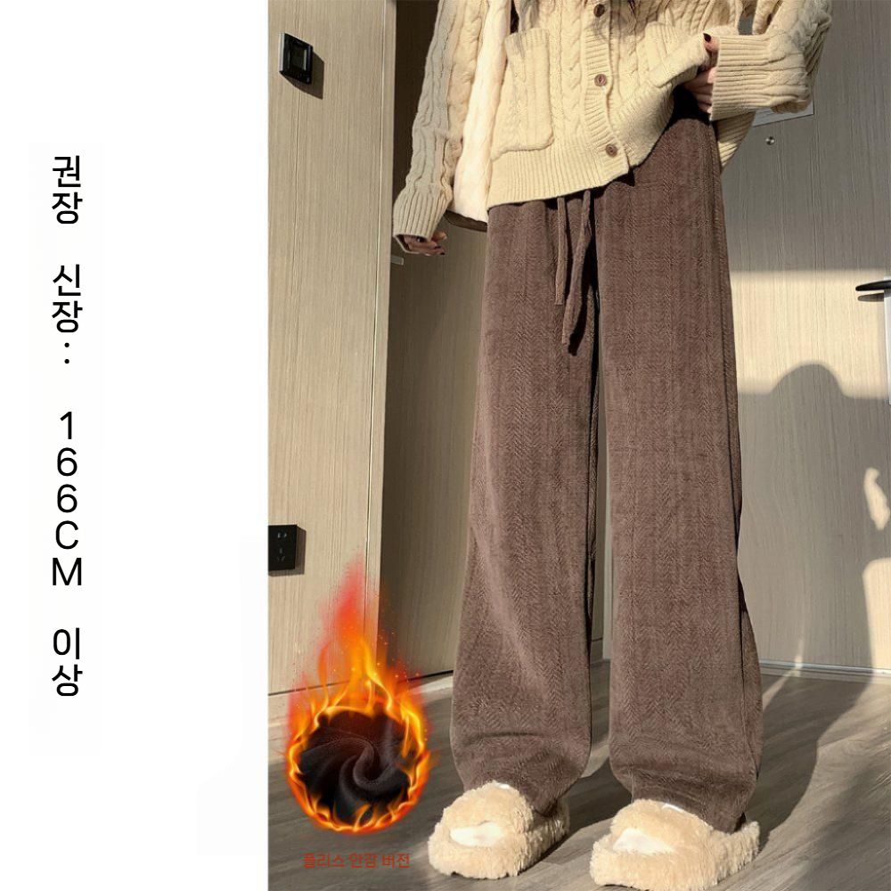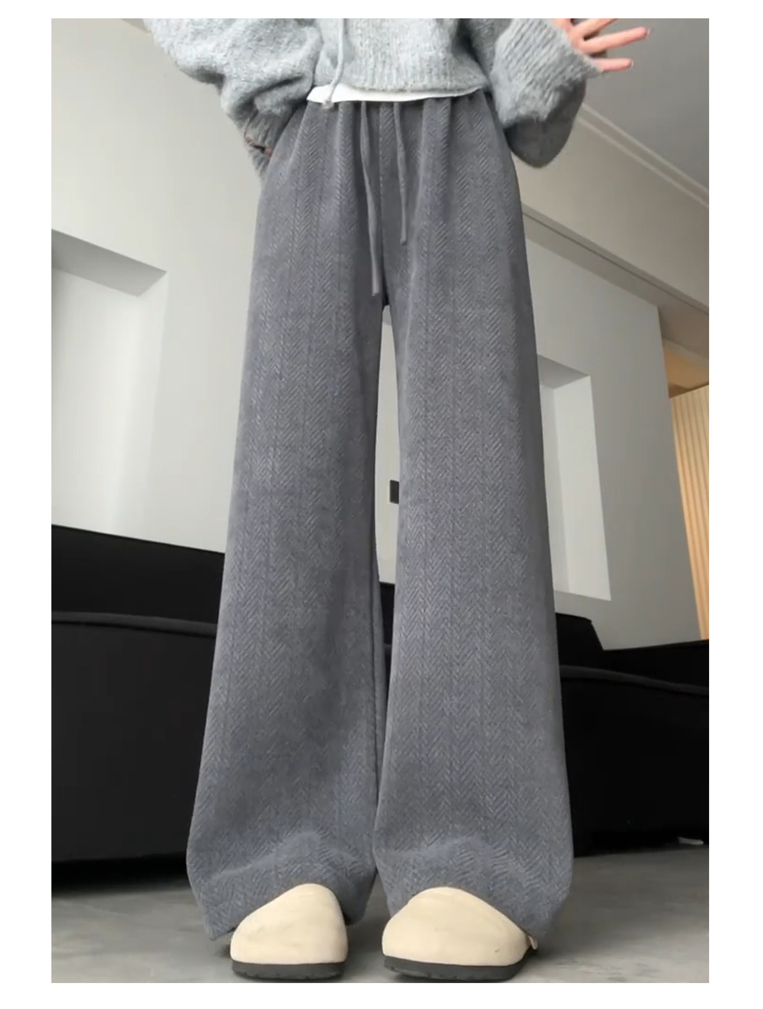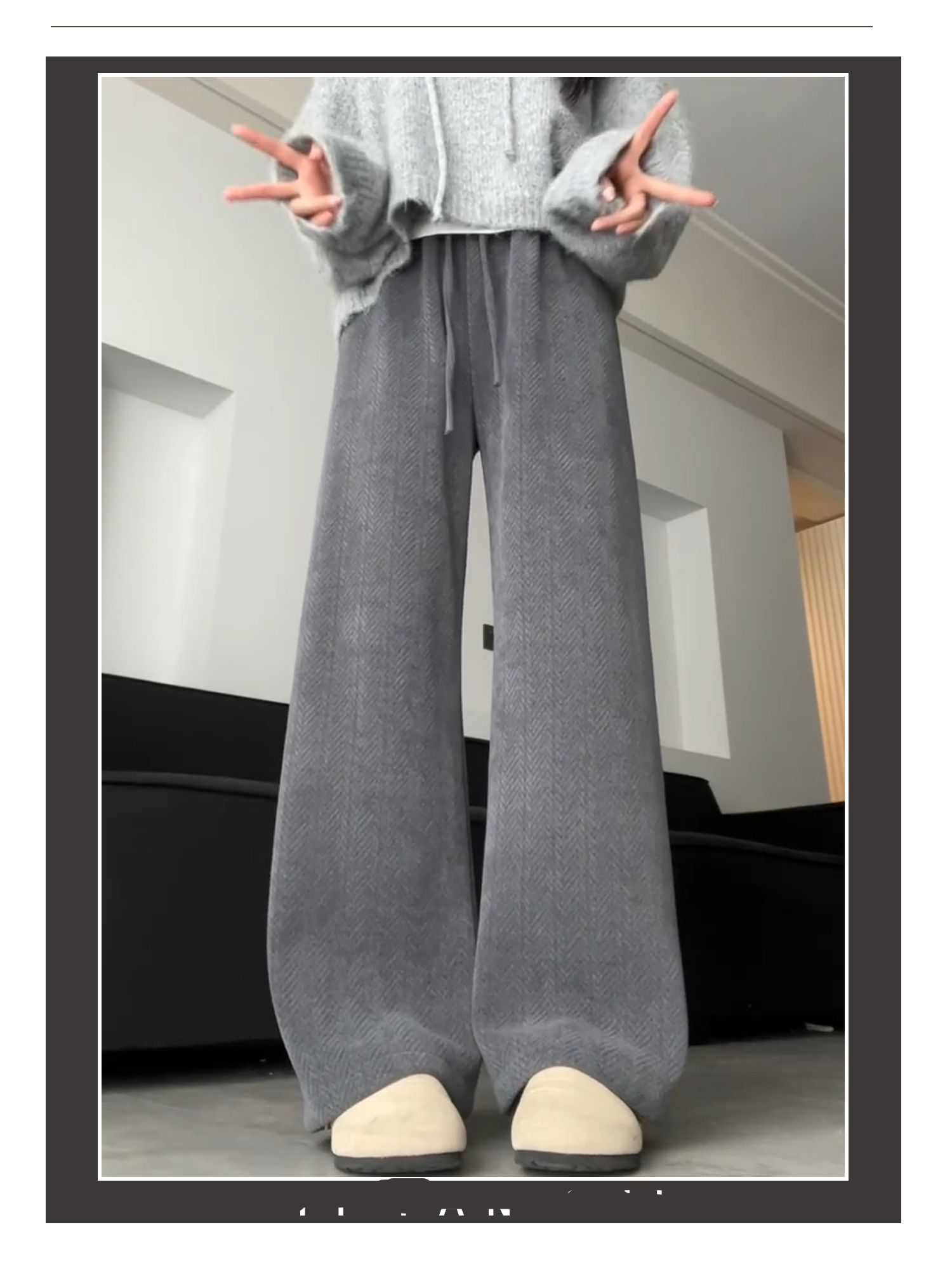 후끈 그레이 헤링본 셔닐 모직 와이드 양털 기모 팬츠 여성용 ss1236