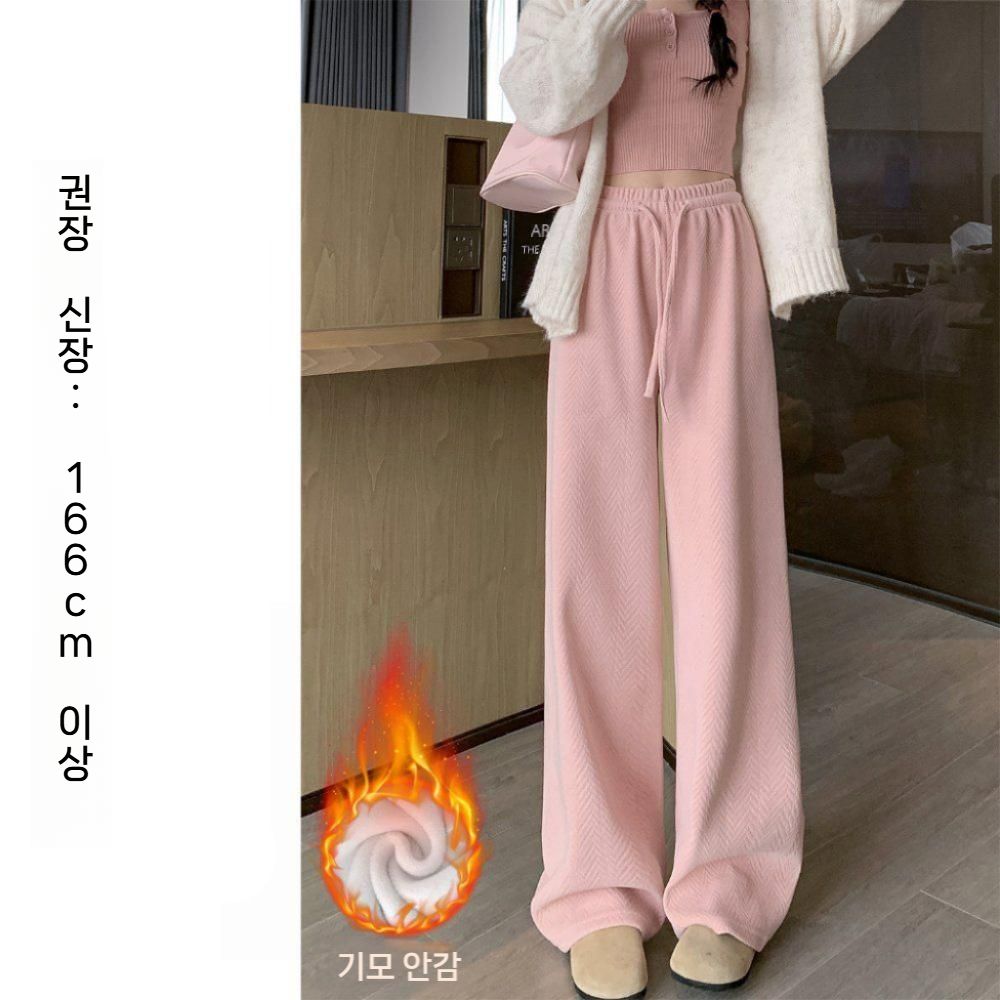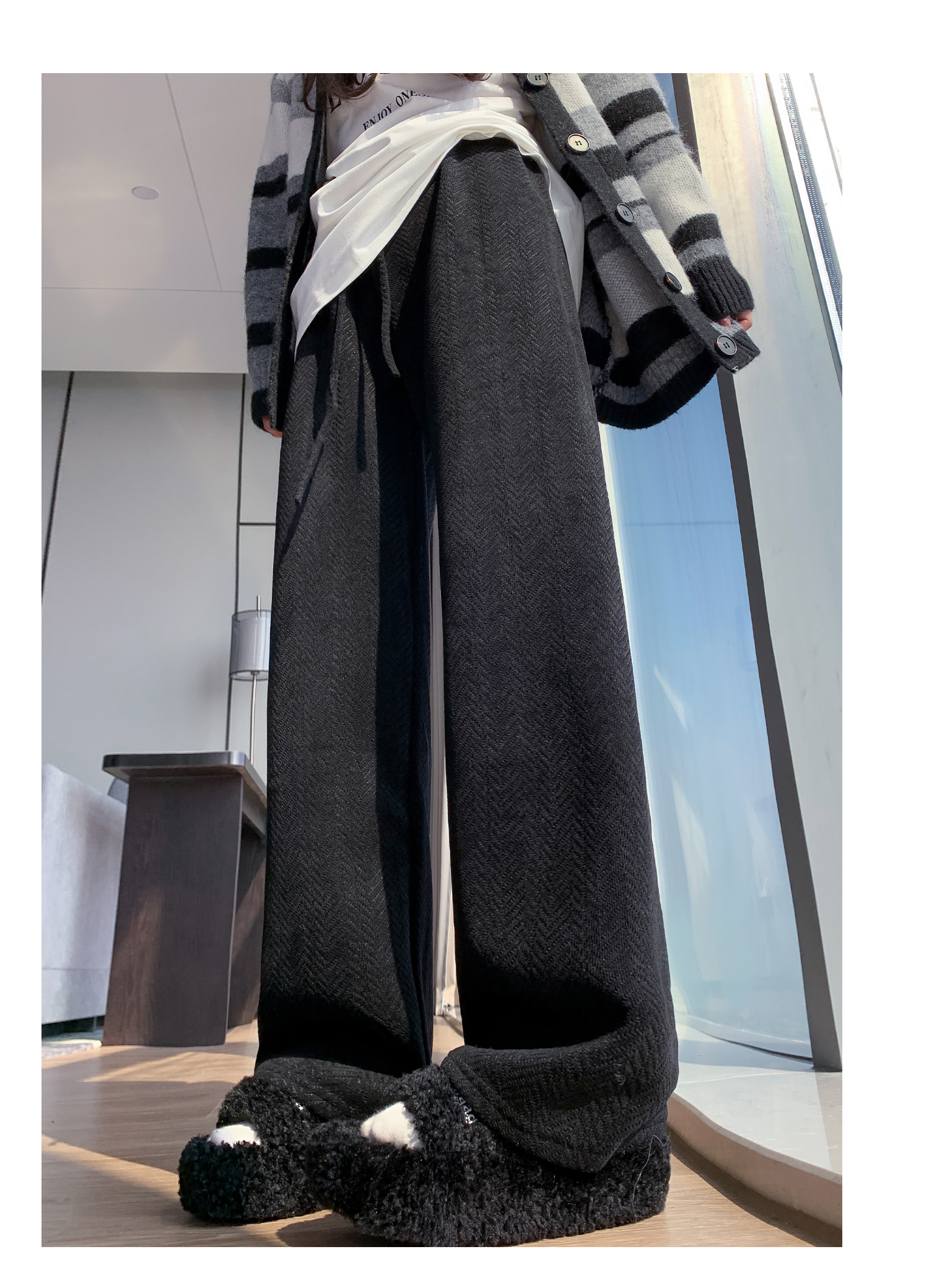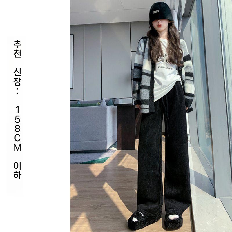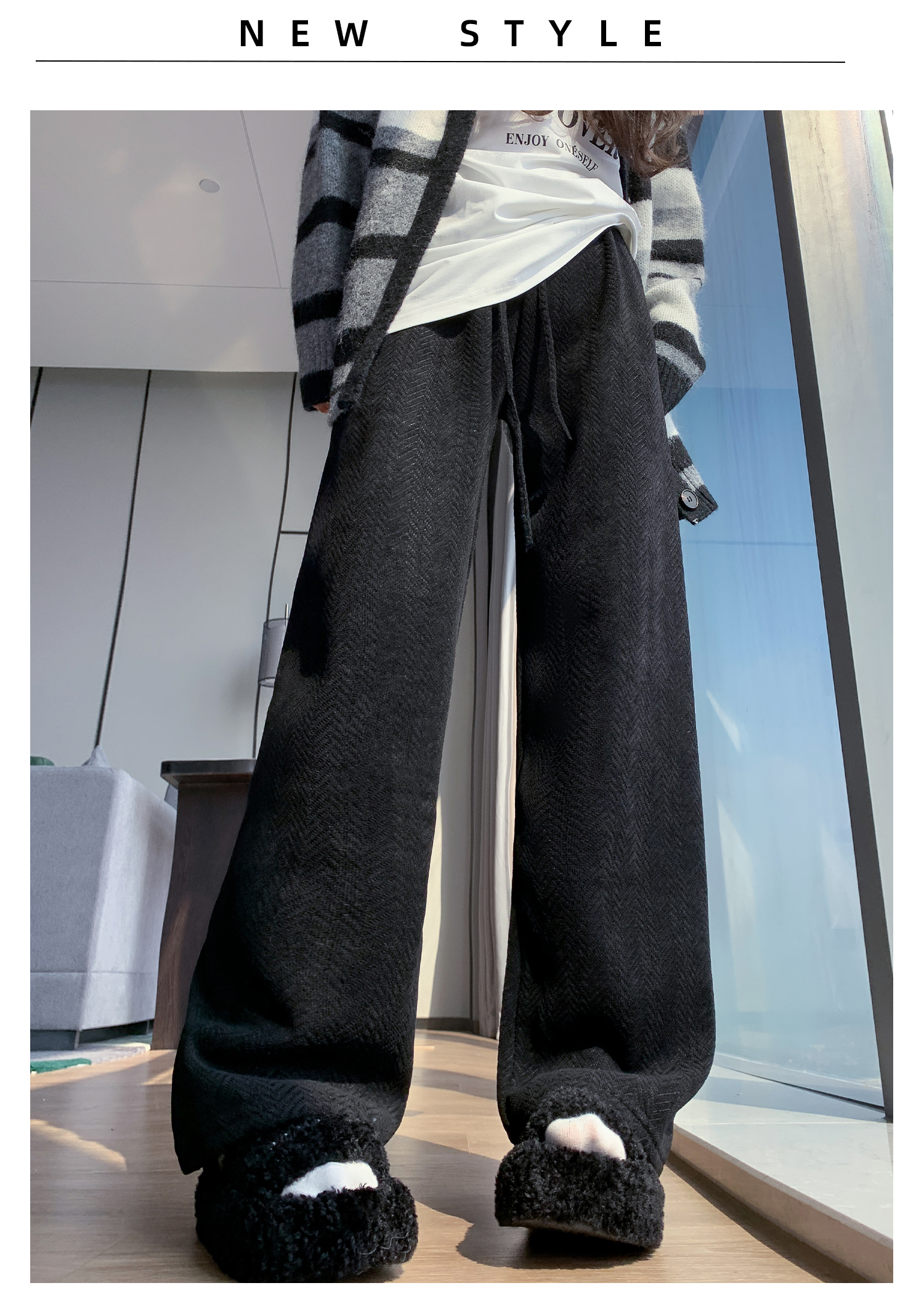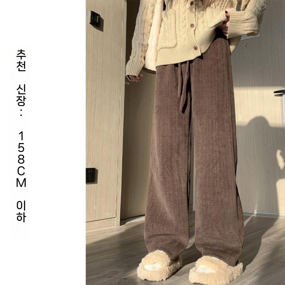 후끈 그레이 헤링본 셔닐 모직 와이드 양털 기모 팬츠 여성용 ss1236