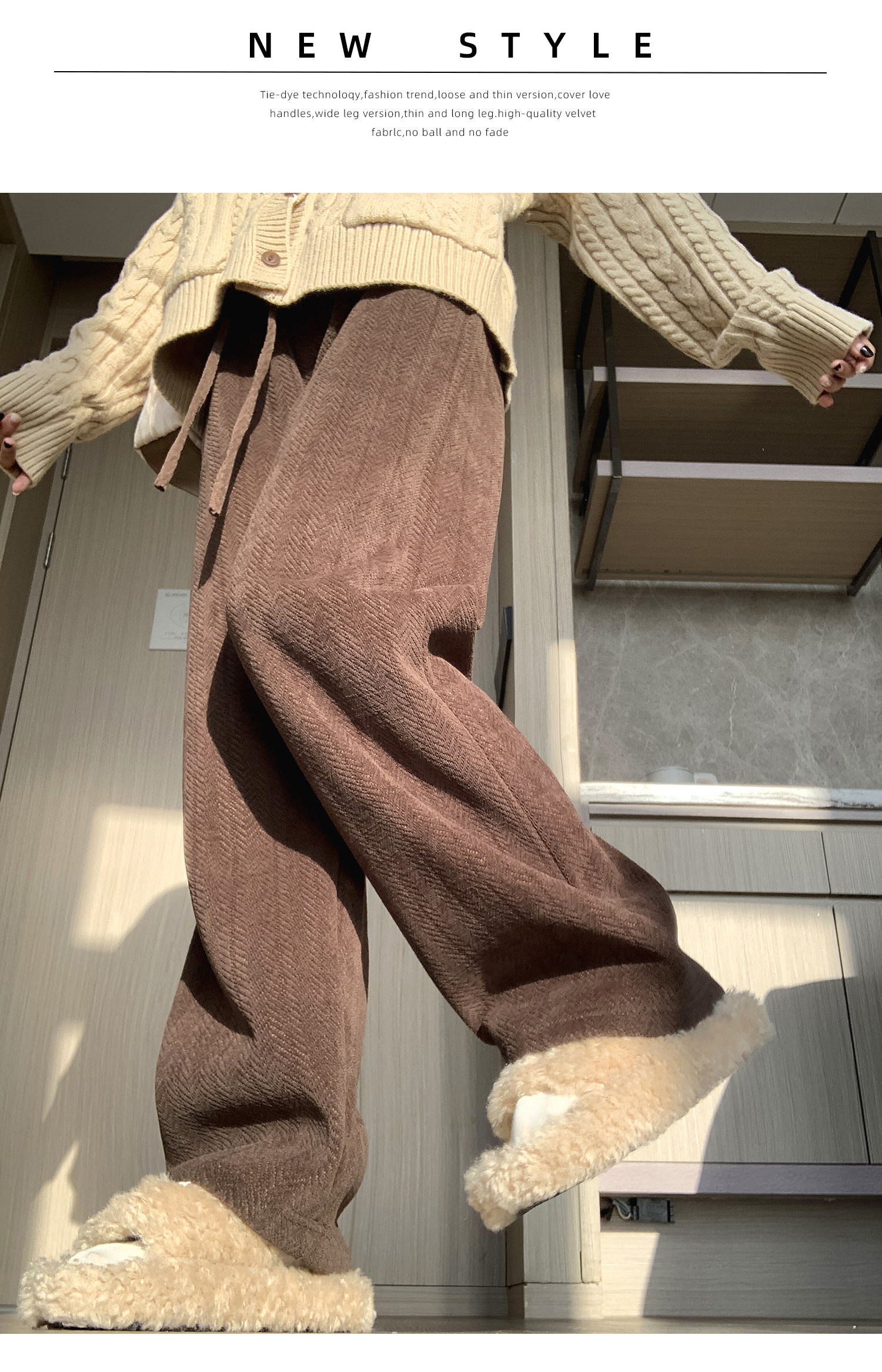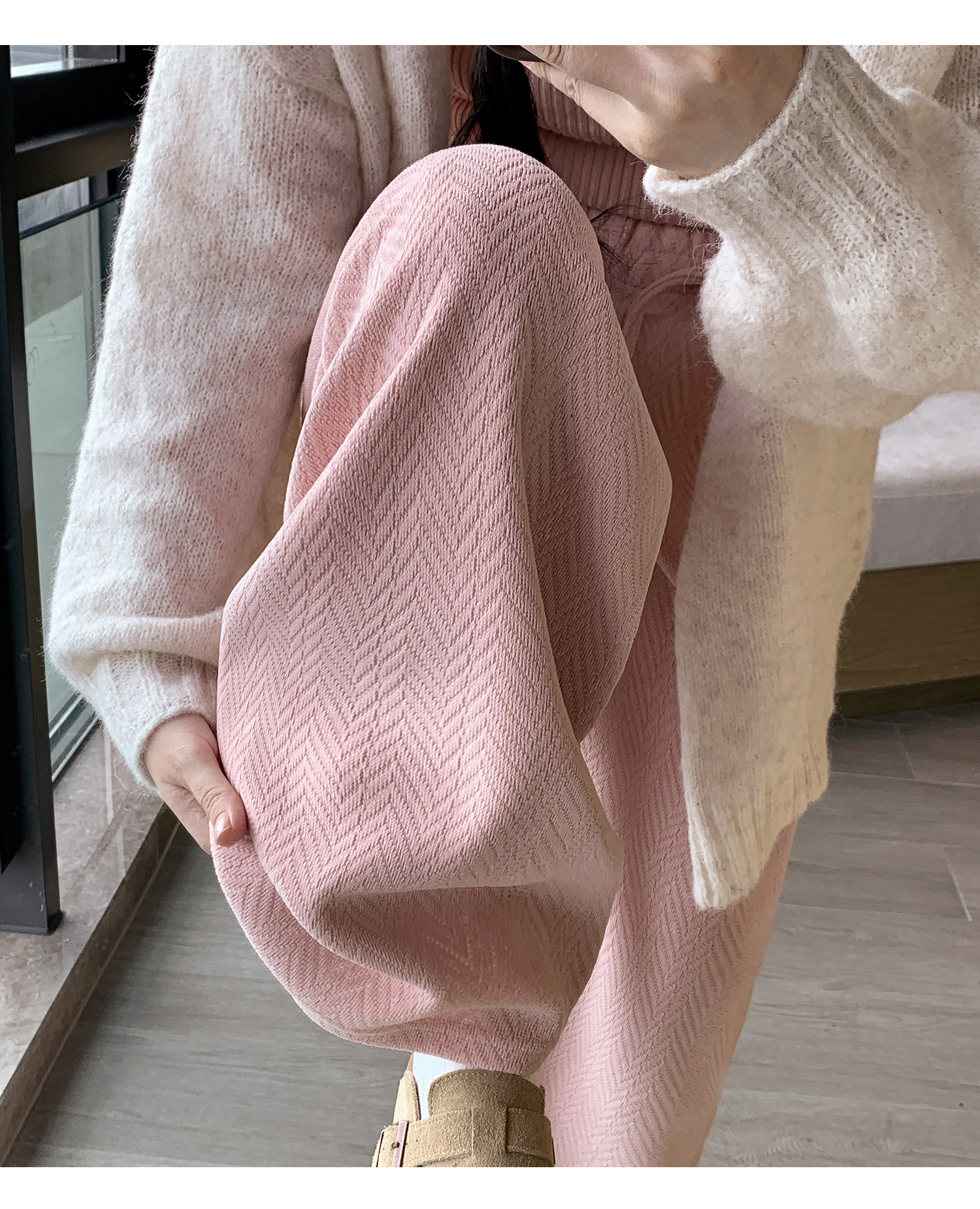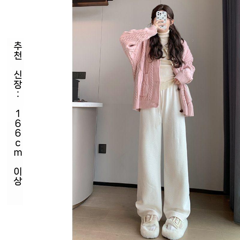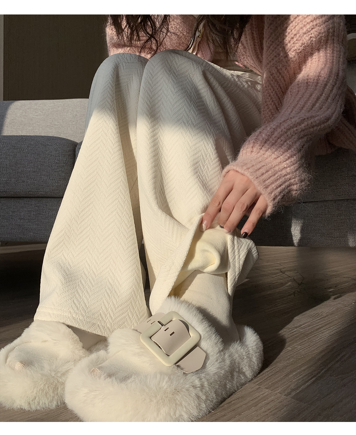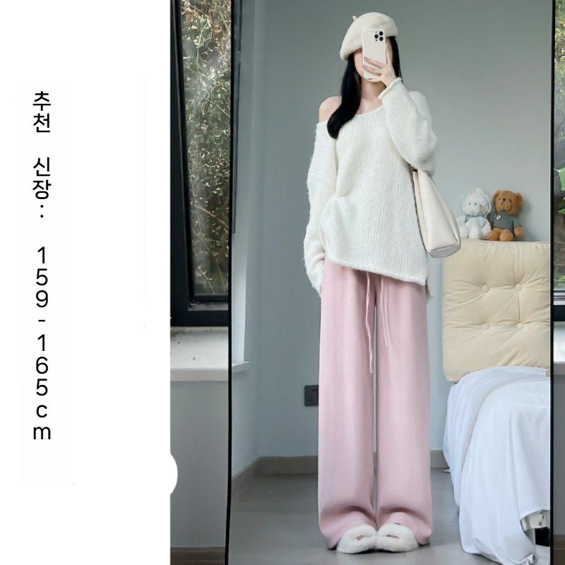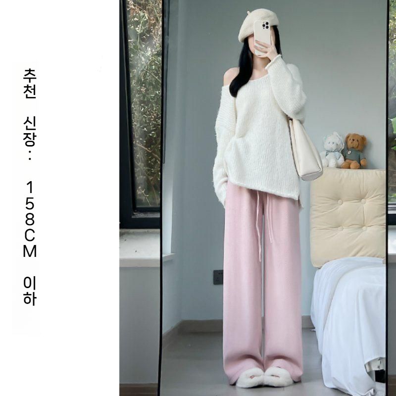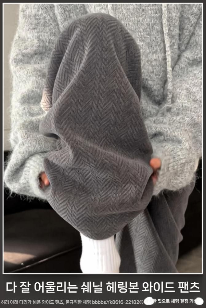 후끈 그레이 헤링본 셔닐 모직 와이드 양털 기모 팬츠 여성용 ss1236